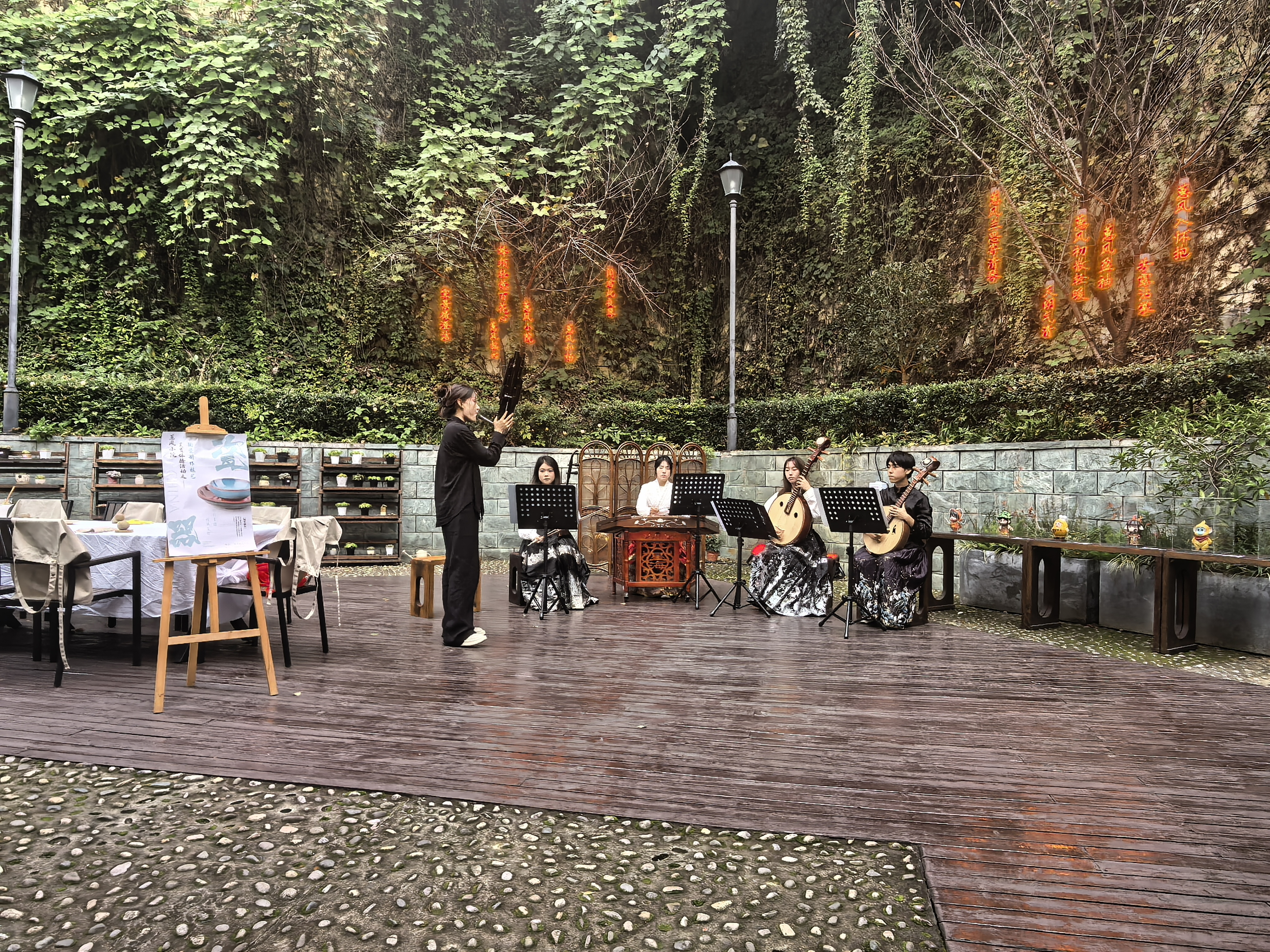 活动现场内容丰富、互动感十足:全国挑战杯、国创赛优秀团队的美育科技作品集中亮相,将艺术创意与实践成果生动呈现;植物领养环节中,师生挑选绿植、贴标署名,在亲手照料中培育责任与爱心;茶艺品茗与九歌民乐团的《微山湖船歌》《丝路驼铃》等经典曲目同步开展,让大家在茶香与音律中感受中华传统文化的深厚底蕴;彩陶制作体验里,师生发挥创意揉捏陶泥,在指尖劳作中体会传统手工艺的独特魅力。