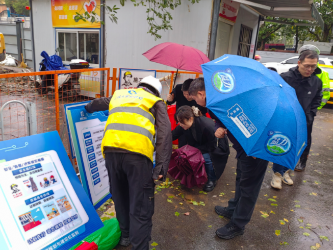 本网讯(通讯员 吴曼曼) 11月17日,校园各工程项目现场在气温骤降、风雨交加的天气条件下依然有序推进。为确保施工安全与师生出行安全,加快推动师生密切关注的各项工程,学校党委常委、副校长王乐华带队深入工地一线开展检查督办。校园规划与建设处相关负责人参加检查。