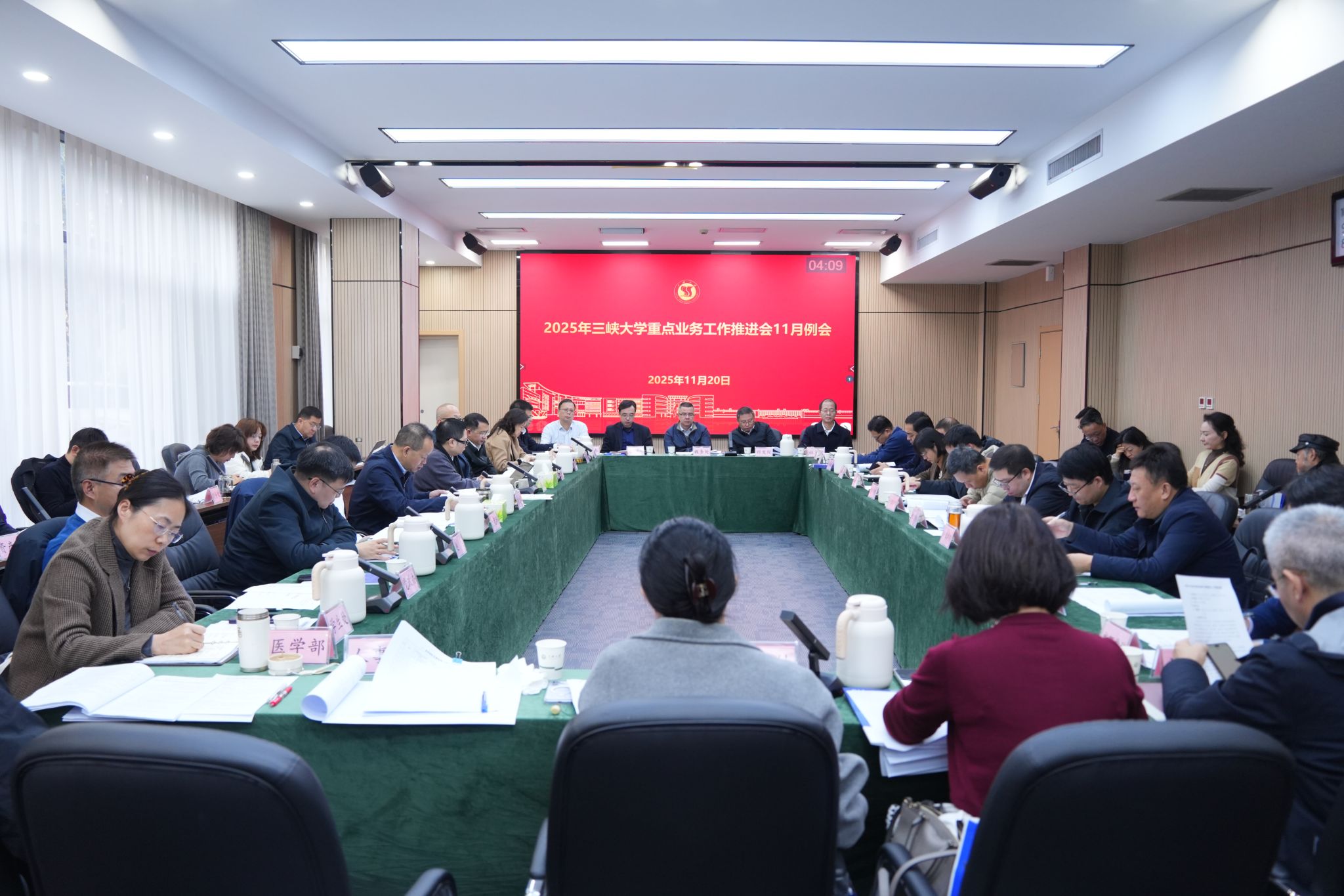 本网讯(通讯员 付艳凌)11月20日上午,学校在行政楼103会议室召开2025年重点业务工作推进会11月例会,听取各学院及相关单位工作汇报。校领导何伟军、黄艳、黄悦华、李东升、赵旭、李长冬出席会议,会议由黄艳主持。