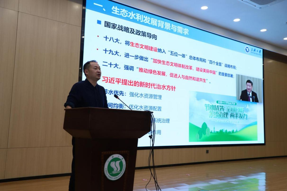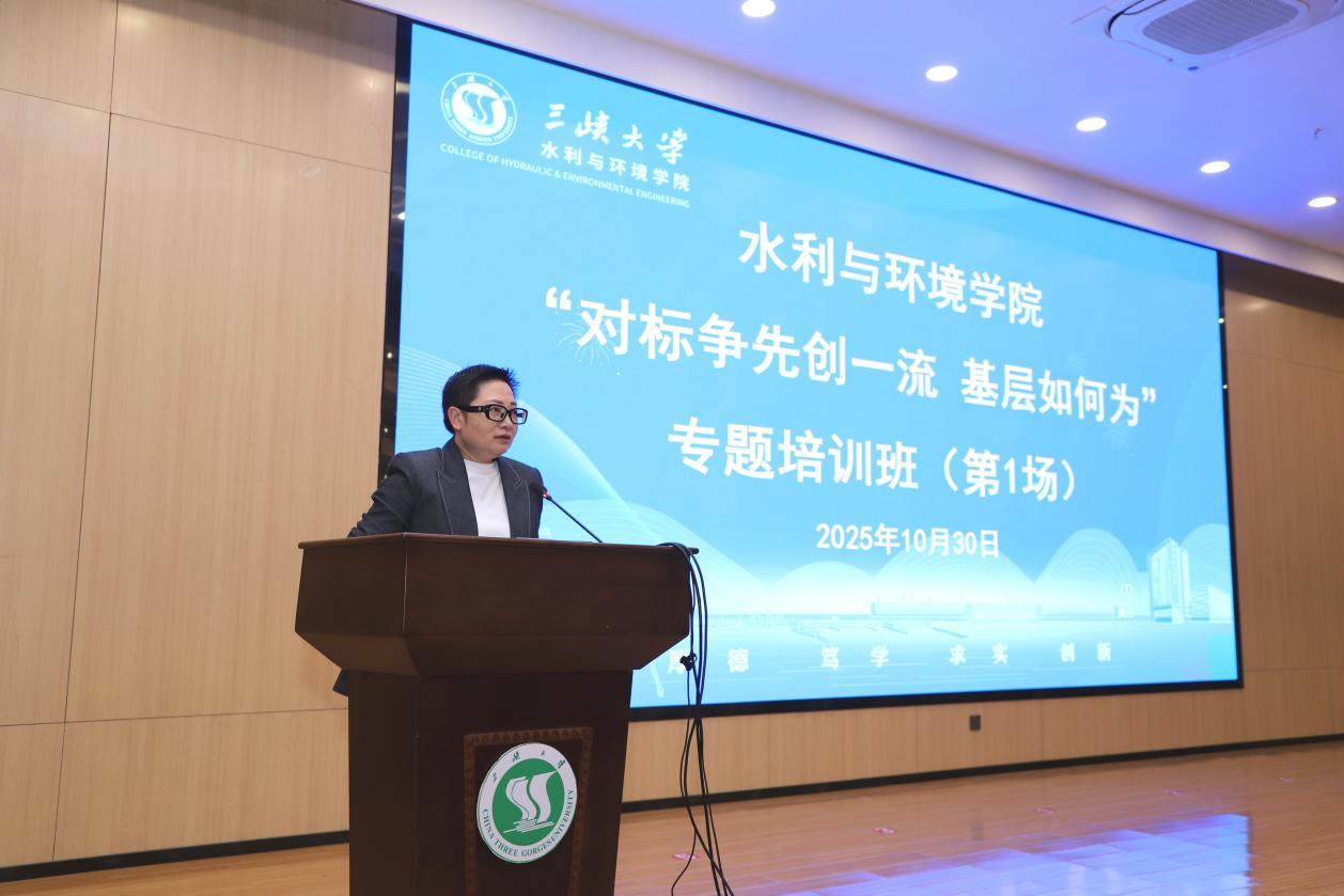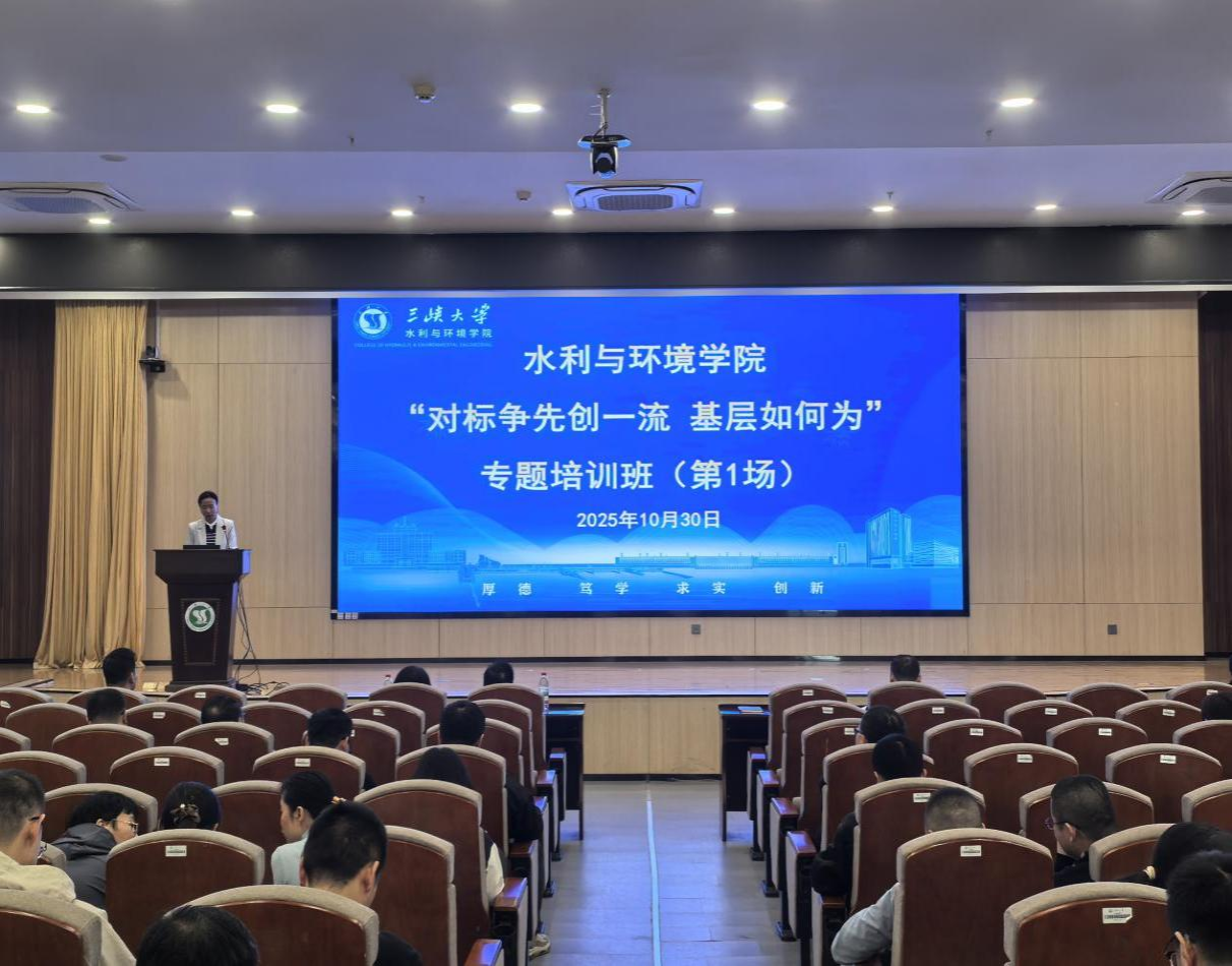 首场培训中,水利与环境学院党委书记欧阳庆芳作题为《党旗领航 聚势赋能 以“一流党建”冲刺“一流学科”》的专题报告。报告立足学院党建工作实际,从政治引领、业务融合、队伍建设、制度规范、安全稳定等多个维度,系统阐述了以高质量党建引领和支撑一流学科建设的实践路径与具体举措。水利与环境学院院长李卫明以《踔厉奋发 提质攻坚 全力冲刺水利工程一流学科》为题,深入剖析了当前学科建设中存在的短板与差距,并从人才引育、项目谋划、成果培育、平台建设、人才培养等关键领域,明确了下一阶段的工作思路与攻坚方向。水利与环境学院党委委员、水生态研究院院长石小涛围绕生态水利学科如何支撑水利工程一流学科建设作专题分享,详细介绍了该学科的发展思路、研究方向规划、人才培养体系及研究平台建设等内容。