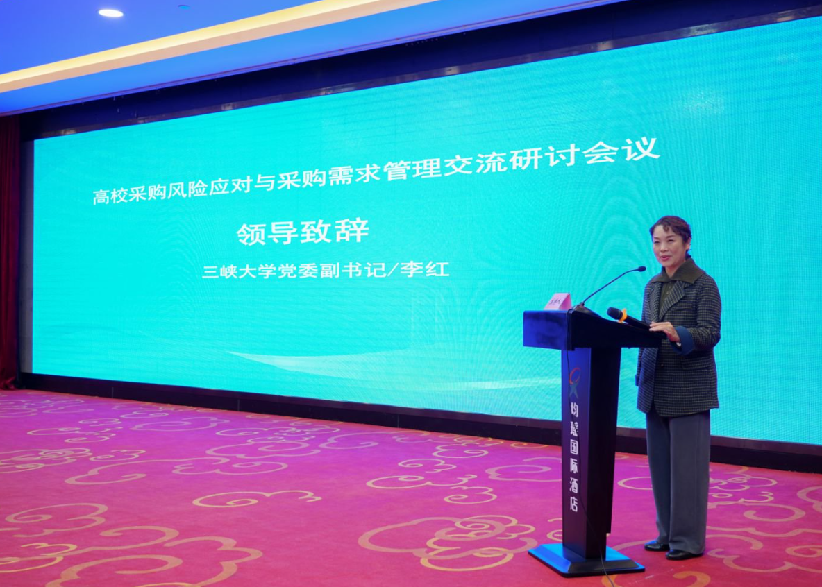 本网讯(通讯员 周澜娇)为提升高校采购工作规范化与高效化水平,加强全流程风险防控,提高采购需求制定的科学性、规范性和精准性,推动高校采购工作高质量发展,11月28日,由湖北省政府采购协会高校采购专委会主办、三峡大学承办的“高校采购风险应对与采购需求管理交流研讨会”在宜昌市均瑶国际酒店成功举行。来自全省60余所高校的政府采购管理及相关部门负责人、业务骨干共140余人参加会议。三峡大学党委副书记李红、湖北省政府采购协会会长黎明出席会议并致辞。会议由湖北省政府采购协会秘书长、省财政厅政府采购处原处长杜春林主持。