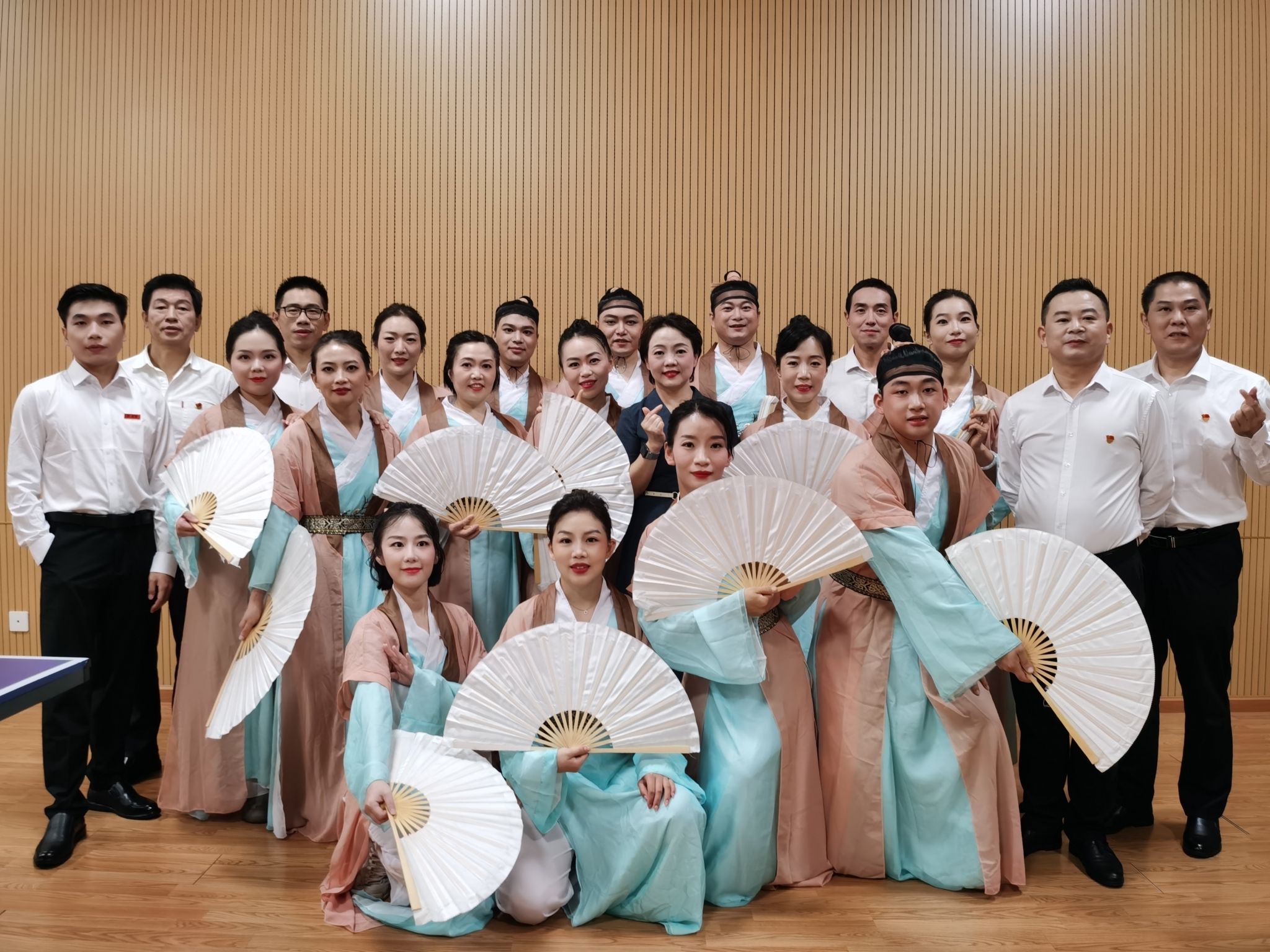我校图书馆编排的舞蹈《纸扇书生》应邀参加了“图书馆人风采展示”。为了舞蹈的呈现效果,参演的14名馆员在工作之余挥汗如雨、刻苦排练。现场演出中,《纸扇书生》雀跃连贯的舞步伴随着轻快悦耳的音乐,将舞台营造出了满满的书香气息,呈现了一场视觉与艺术的双重盛宴,得到了观众的掌声与好评。此外,我校图书馆三位馆领导也积极参与,与另外4位馆员一起参演了由宜昌市图书馆学会编排的诗朗诵《宜昌情书》节目,获得一致好评与点赞。