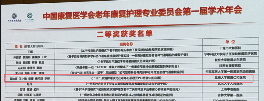此次获奖是对我校附属仁和医院心脏康复护理团队的充分肯定。附属仁和医院将继续紧跟康复护理创新前沿,持续探索和应用新的康复护理理念和技术,提升老年患者的治疗效果和生活质量,为中国老年康复护理事业的发展贡献力量。