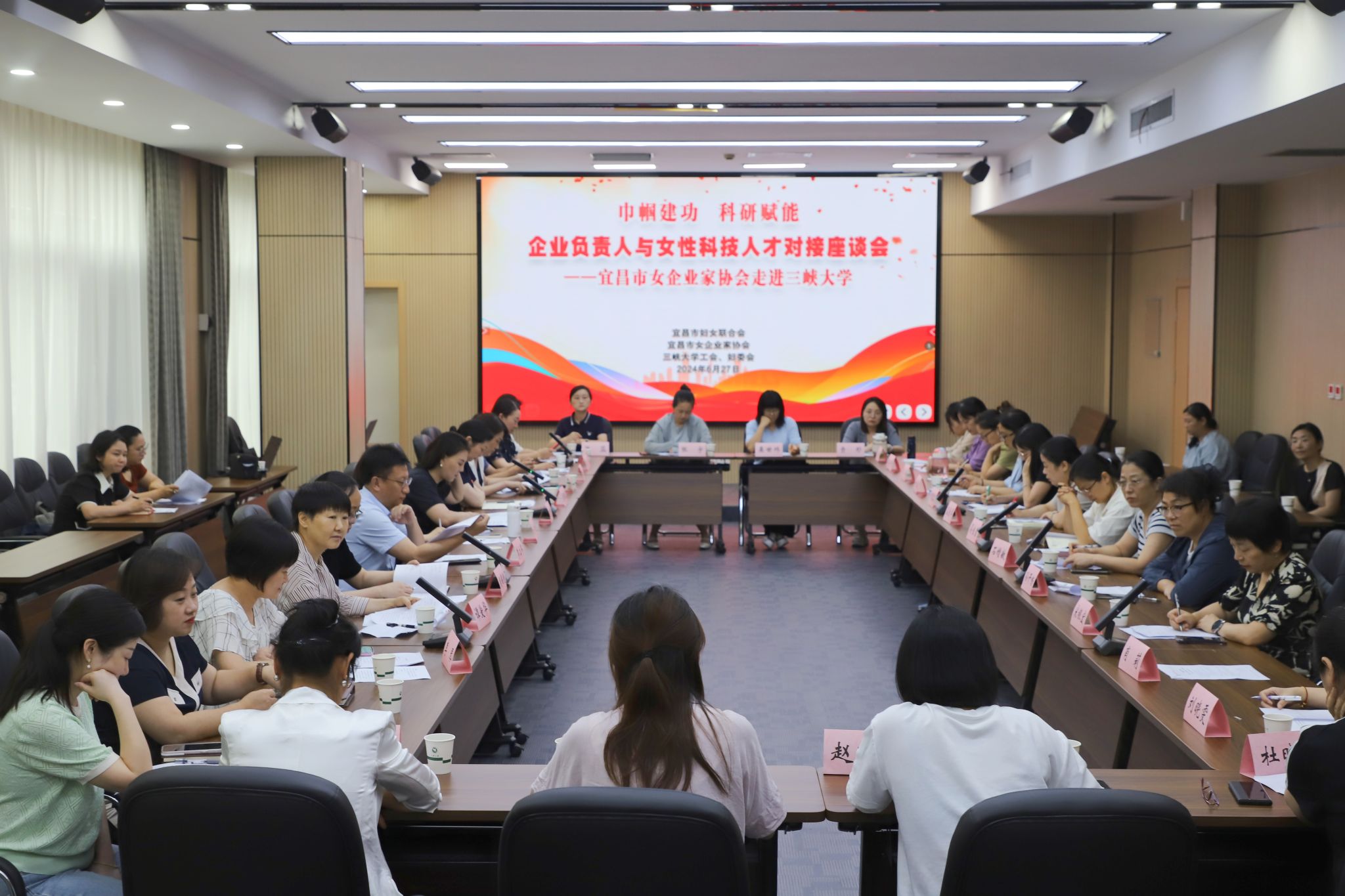 本网讯(通讯员 邹滢)为加强我校女性科技人才与宜昌地方企业的交流与合作,促进我校女性科技人才科研成果转化,6月27日下午,校工会、校妇委会特邀宜昌市妇联、宜昌市女企业家协会走进我校,组织开展了“巾帼建功 科研赋能”宜昌女企业负责人与女性科技人才对接座谈会。座谈会在行政楼一楼103室举行,宜昌部分企业、三峡大学、湖北三峡职业技术学院共计30余名女企业家、女性科技人员和相关部门负责人参加活动。会议由学校工会副主席、妇委会主任邹滢主持。