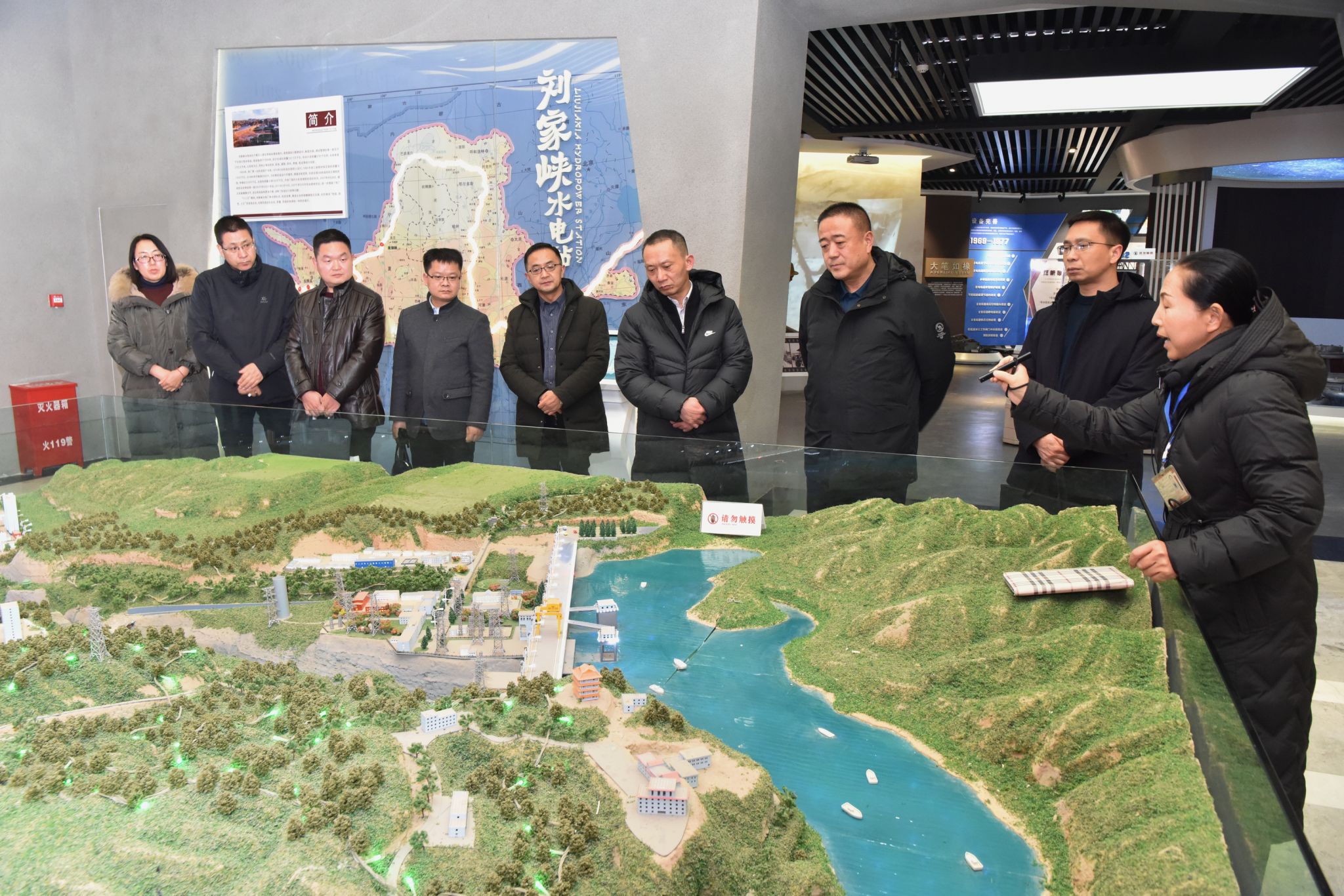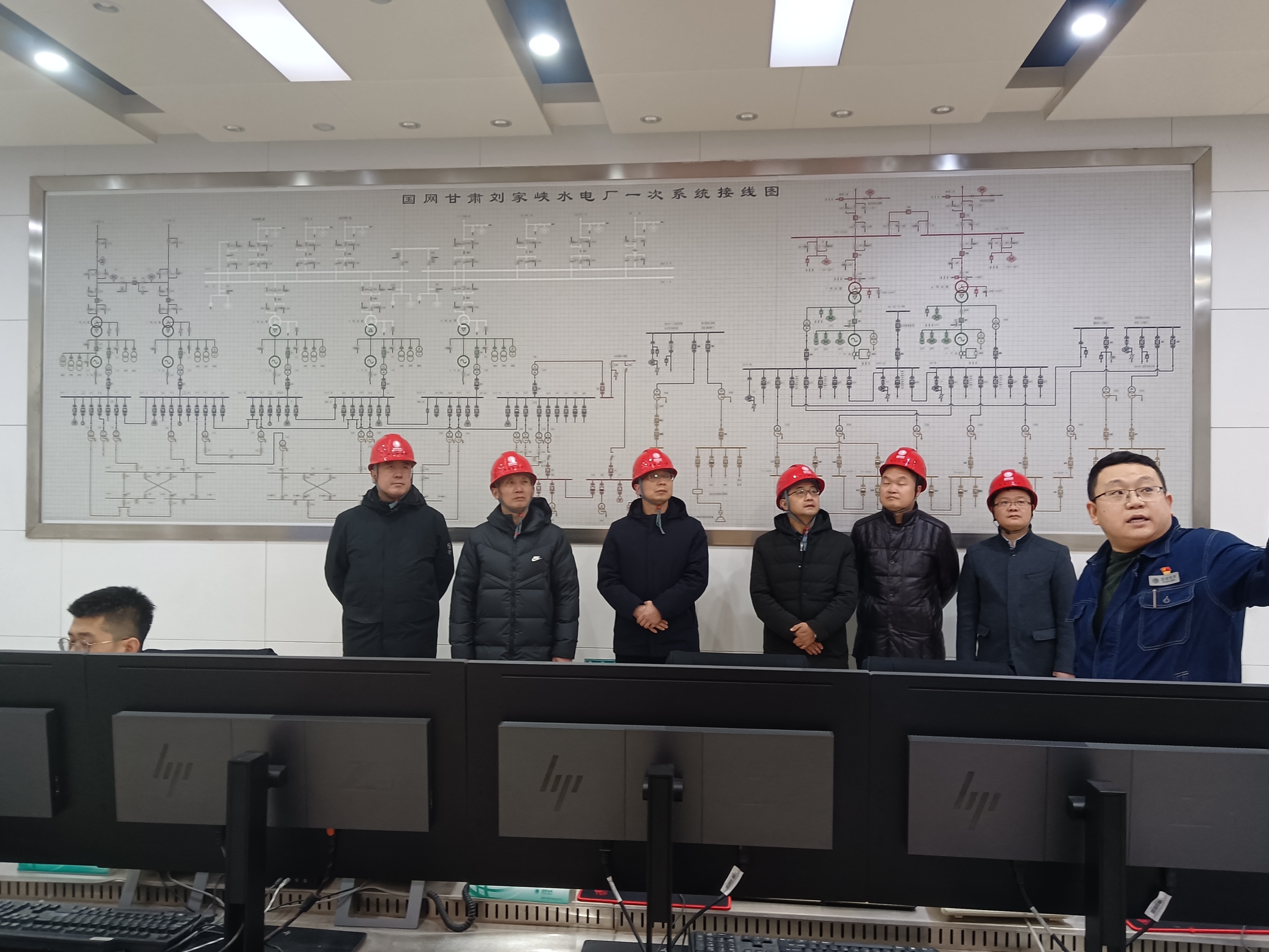 在国网甘肃刘家峡水电厂,甘行元一行先后参观了刘家峡水电厂企业文化室、大坝、厂房、中控室、爱国主义教育基地(330KV开关洞)等。