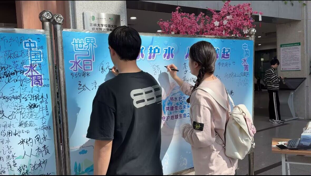 书展期间,团中央第十一届“母亲河奖”(绿色卫士奖)获得者、三峡大学水资源信息化研究所所长郭家力副教授来到书展现场,他向师生读者科普我国水资源状况及重要性,充分肯定了本次书展的重要意义,同时倡导大家做节水护水、爱水惜水的践行者。活动现场,我校众多师生读者积极参与“节水爱水 从我做起”倡议签字活动,纷纷留言表示愿从身边点滴做起,守护地球生命之源。