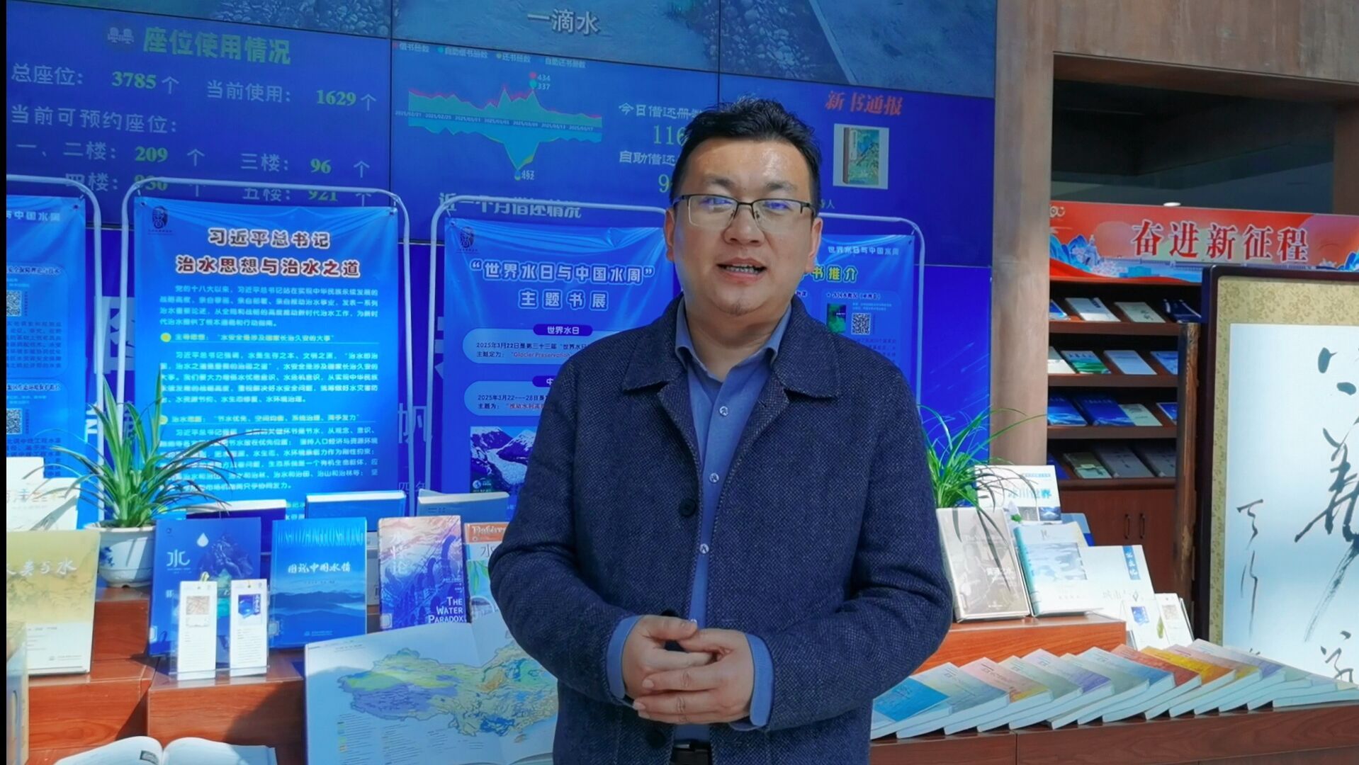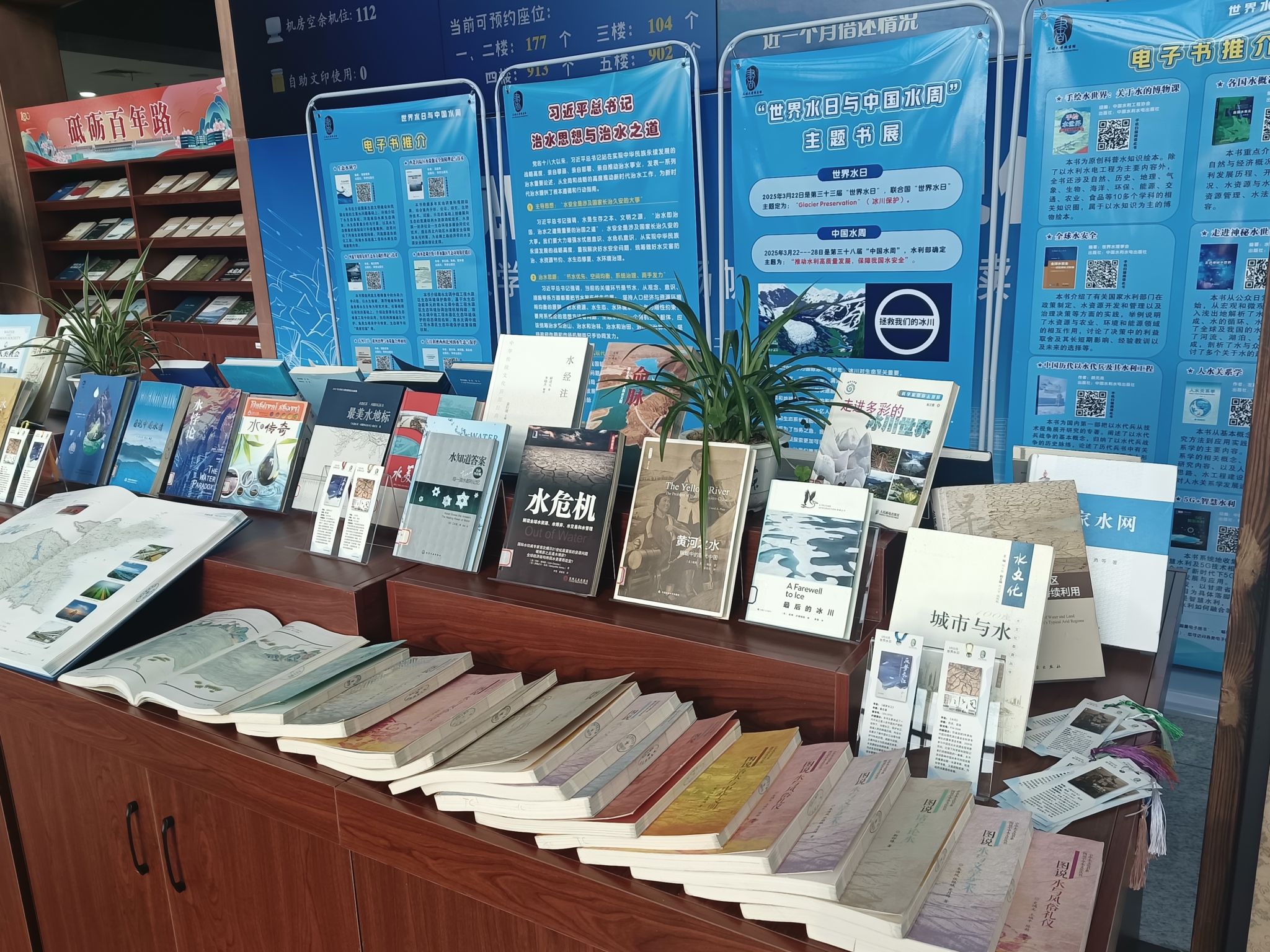 此次主题书展推出一百多册关于中国历代水利工程、中国水文化、现代水利工程技术等方面精品纸质图书,以图书、画册、视频、展板等形式,主要展示我国水资源概貌、水文化研究、水安全措施、古今水利发展史等,并介绍了新时代“节水优先、空间均衡、系统治理、两手发力”的治水方针;同步还推出一系列关于水资源和水利工程的电子图书,线上线下构筑立体知识矩阵,深化师生对水资源保护的认知,助力国家水安全战略实施。