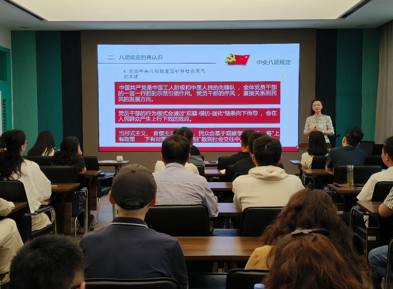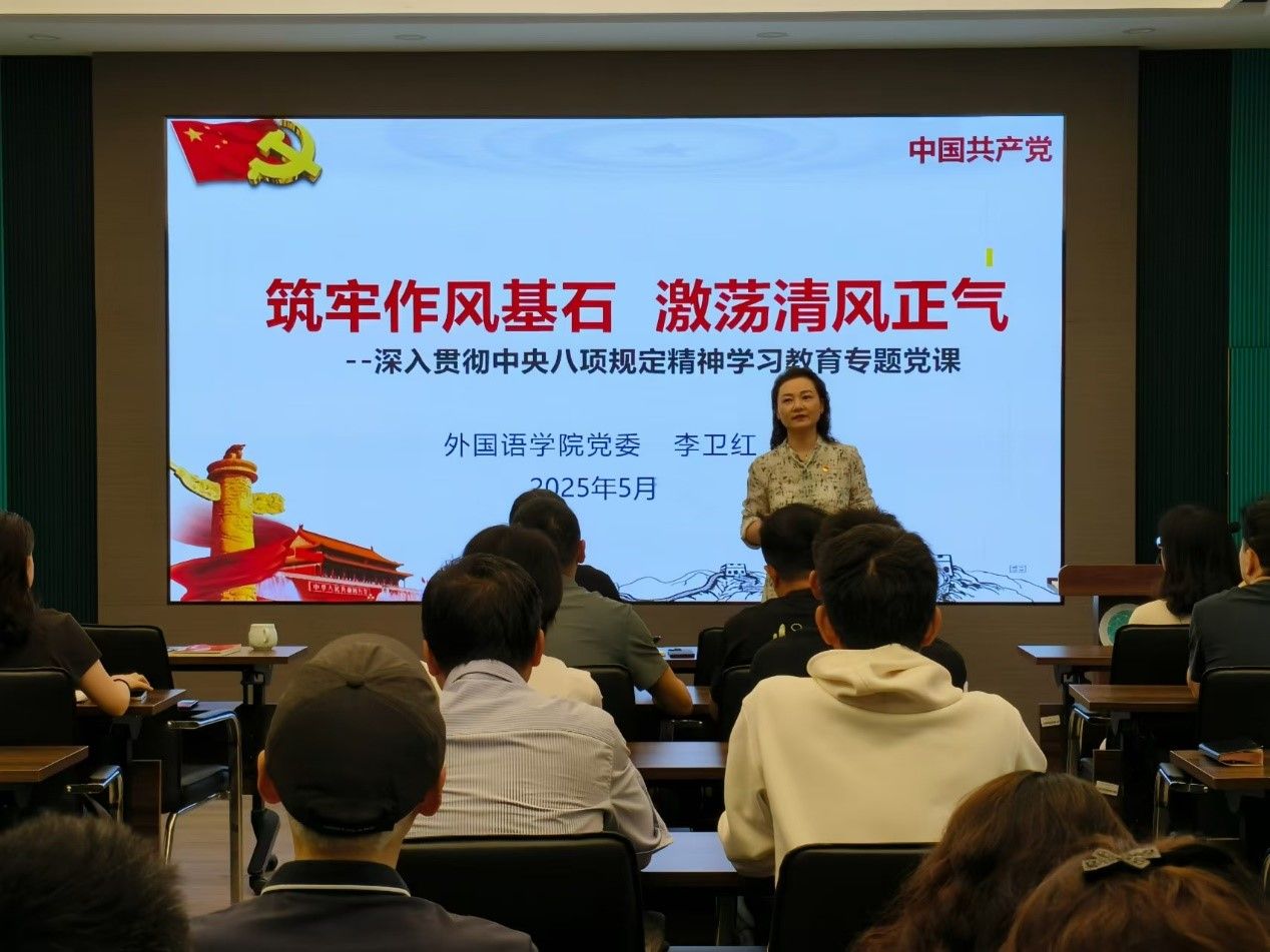 席敬指出,全体人员要以优良作风凝心聚力、干事创业。他表示,中央八项规定精神体现出的自律、严谨、务实的作风,对跨文化能力培养具有示范和引导作用。作为“外语人”,全院上下要努力提高自身的跨文化能力,帮助和引导学生在全球化背景下更加自信和有效地进行跨文化交流。
