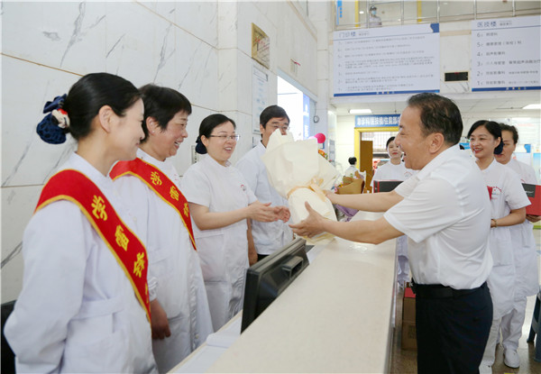 本网讯(通讯员 李昕) 为庆祝第113个“5.12”国际护士节,弘扬南丁格尔精神,表达对全院护理人员的关爱,5月11日上午,附属仁和医院党委书记董波、副院长吕建峰带领护理部全体人员及科护士长,分组对急诊科、新生儿科、呼吸与危重症科、ICU、神经外科、心胸大血管外科、普外一病区、门诊部、肾病病区、内分泌病区等临床科室护理工作者进行慰问,向他们致以节日的祝福和崇高的敬意!
