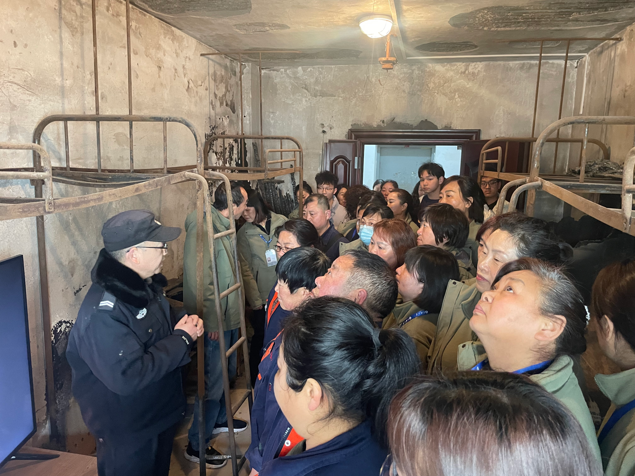 在警示教育参观环节,参训人员走进火灾事故遗留现场,目睹了被大火烧至扭曲变形的宿舍铁架床、碳化成骨架的桌椅以及被浓烟熏黑的墙壁等场景,这些真实的灾难痕迹仿佛在诉说着火灾的无情与残酷。后勤员工们触摸着焦黑变形的门框,空气中残留的刺鼻焦糊味,让“火灾事故”从抽象概念转化为眼前触目惊心的生命警钟。保卫人员结合《高等学校消防安全管理规定》,详细解析了后勤人员在隐患排查、初期火灾处置中的具体职责,着重强调了“安全无小事,责任重于山”的安全理念,使参训人员深刻认识到消防安全工作的重要性与紧迫性。