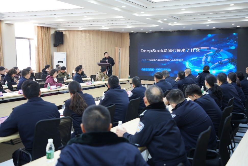 西陵公安分局何伟政委分享了自己使用DeepSeek软件的体会,强调公安同志们要勇于拥抱AI技术,并邀请刘教授前去授课。保卫处陈鹏处长在总结讲话中,介绍了我校安防领域已运用的AI技术,并对警校共建“智慧安防示范区”提出了希望和要求。