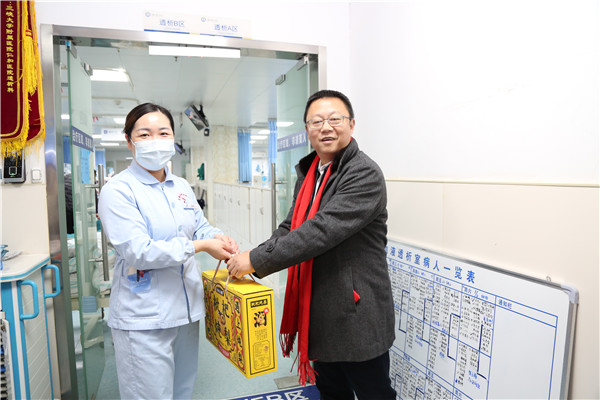本网讯 1月28日除夕,正是万家团圆共庆佳节之时,处处都张灯结彩,充满着浓浓的年味,附属仁和医院的医务人员们却依旧忙碌在救死扶伤的第一线。上午8点,党委书记董波、院长黄晓飞、党委副书记田辉、副院长吕建峰和部分职能部门负责人,为春节假期还坚守在岗的医院职工送去节日的问候和祝福。