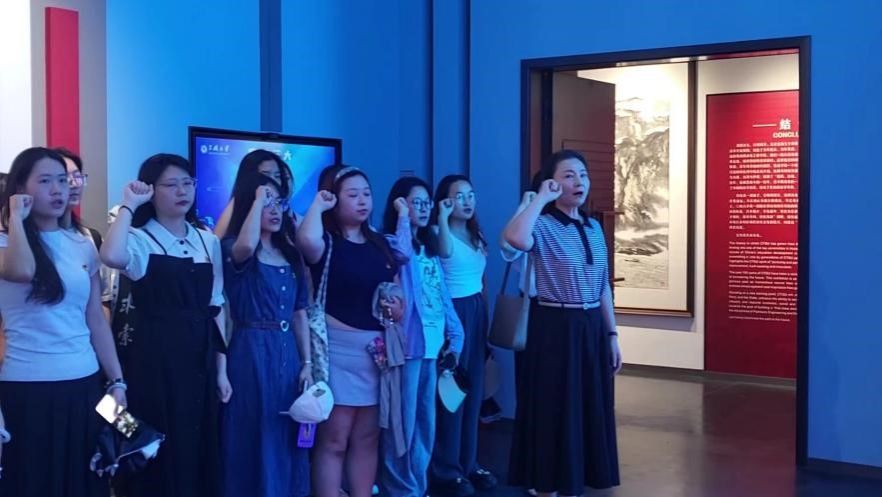 在李卫红的带领下,大家重温入党誓词。在庄重而感人的氛围中,党员同学代表分享了观后感。他们对学校展出的学术成果、师资力量和校友资料印象深刻,表示“作为三峡大学的学子,为学校取得的辉煌成就感到骄傲和自豪”。张新英则鼓励党员同学们积极成为“讲好三峡大学故事、传播三峡大学声音”的践行者。