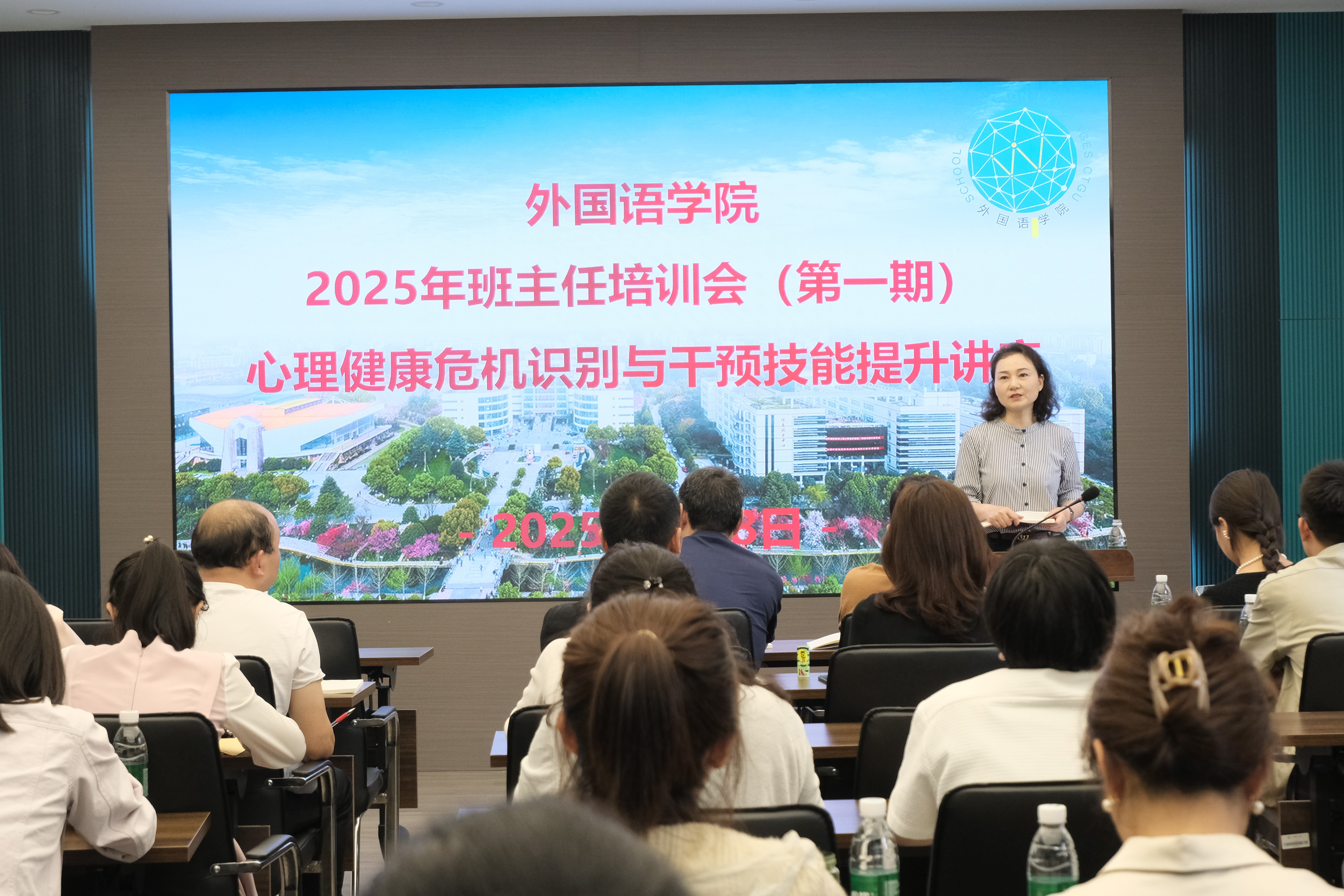 本网讯(通讯员 刘天宇) 为深化班主任队伍建设,全面提升育人队伍专业水平,5月8日,外国语学院在W-2339“一站式”学生社区举办2025年班主任培训会暨教师心理健康讲座。外国语学院领导班子、支部委员、行政管理人员、全体班主任、辅导员等40余人参会。活动由外国语学院党委书记李卫红主持。