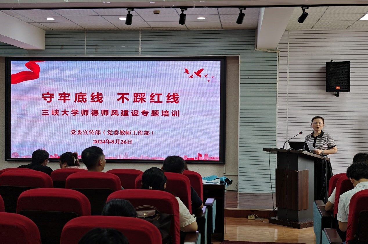 本网讯(通讯员 张新英) 为进一步强化师德师风建设,引导学院教师以德立身、以德施教,大力弘扬教育家精神,争做“四有”好老师,当育人大先生,9月5日下午,外国语学院党委举行师德师风建设培训会。外国语学院党委书记李卫红进行专题宣讲,学院全体教职工参加培训学习。