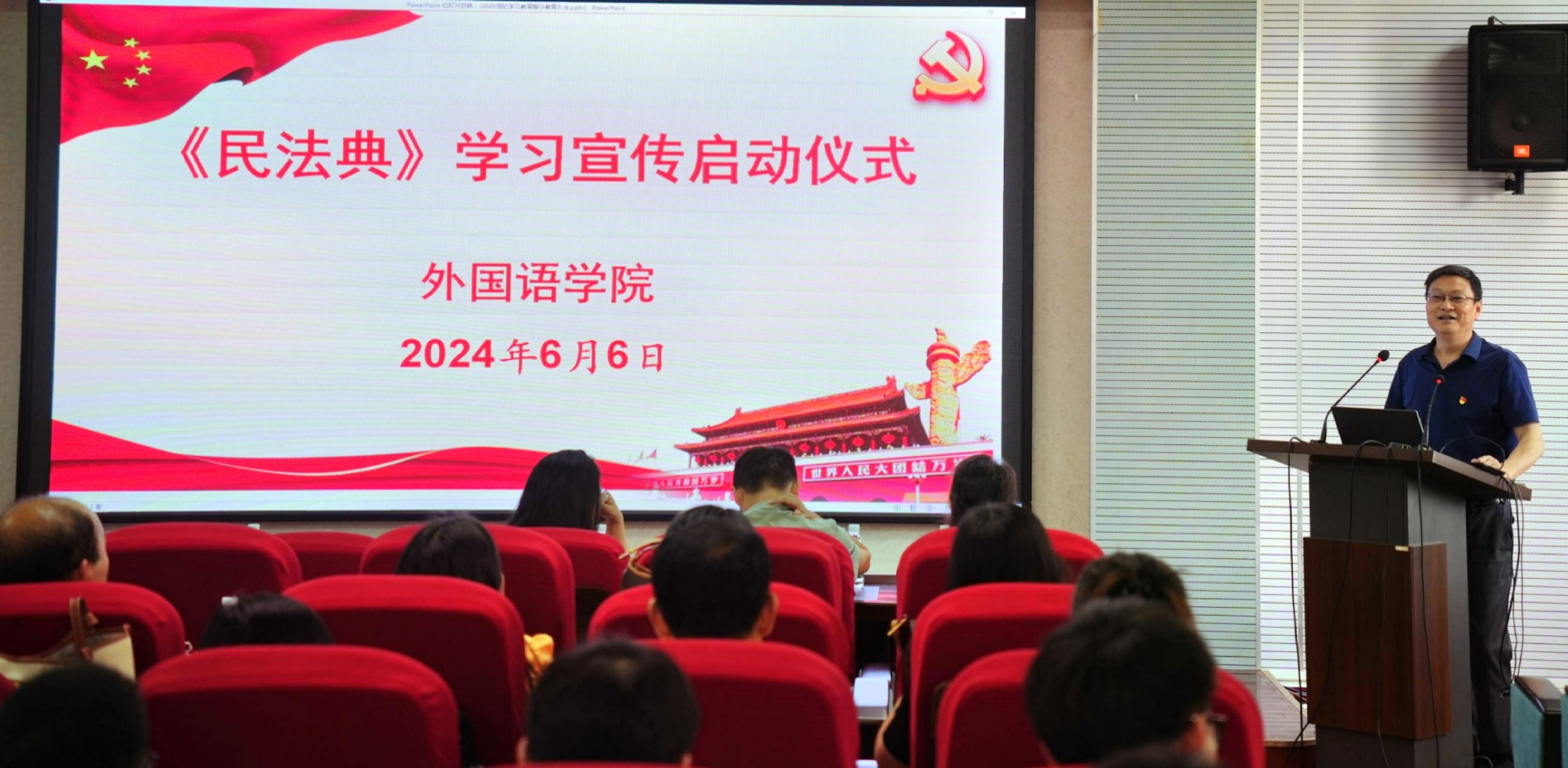 会上,与会人员集体观看了《廉政教育系列参考片——惩治新型腐败和隐形腐败典型案件警示录》,还进行了《中华人民共和国民法典》学习宣传启动仪式。外国语学院院长席敬在动员讲话中号召老师们结合自身专业特点,将法律法规的学习与教学、科研等工作结合起来,不断增强法纪意识,助推学院事业高质量发展。