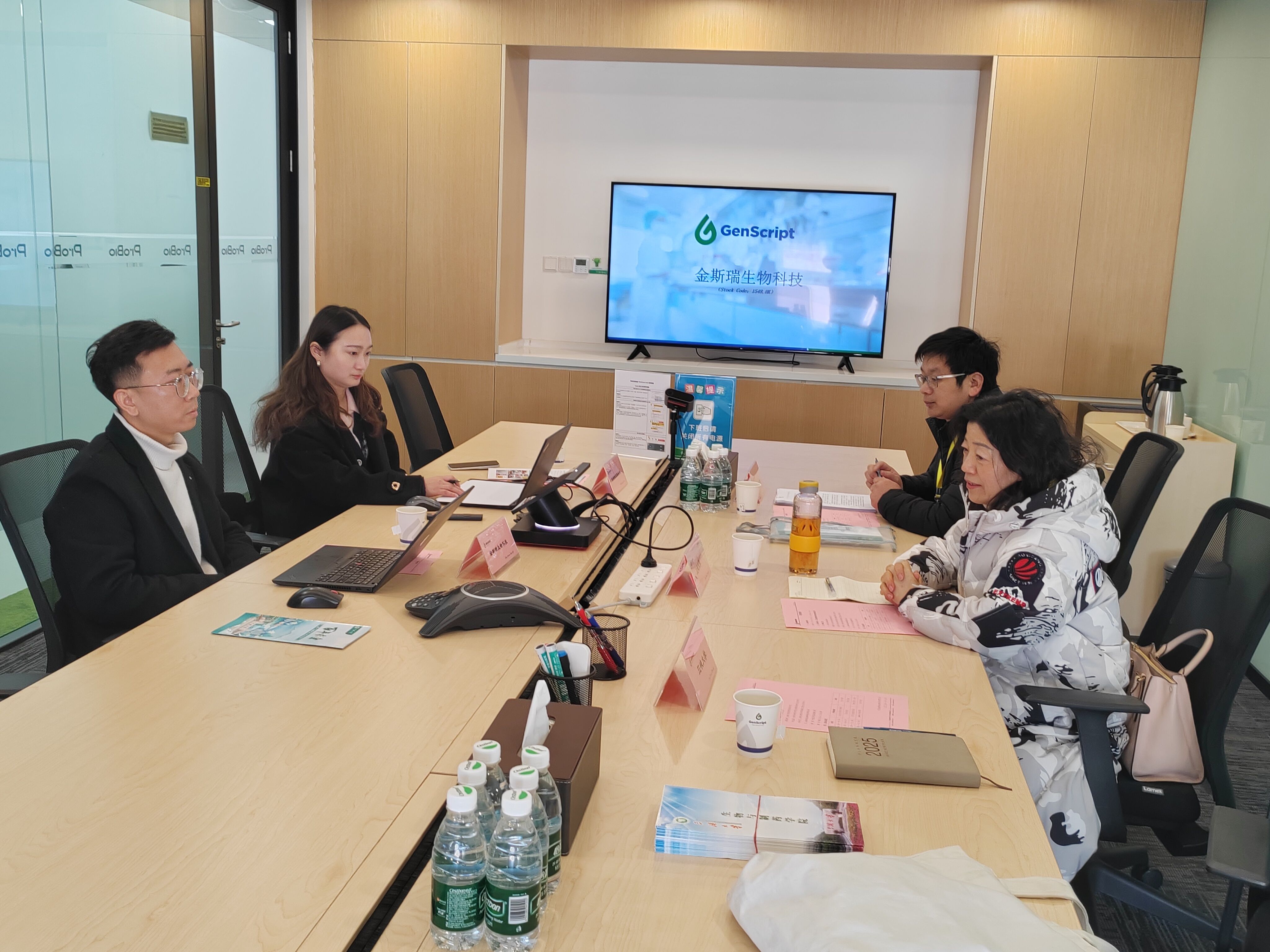 15日上午,团队来到位于镇江国家大学科技园的江苏金斯瑞蓬勃生物科技有限公司。杨昌英详细介绍了学院及专业情况,企业人事经理对公司发展历程、人才需求情况作了详细说明,双方就毕业生实习、就业、产教融合联合培养等事项进行了详细对接。随后,杨昌英一行看望了在企实习的生物工程专业学生并进行座谈交流。杨昌英一行还参观了公司的生产车间。