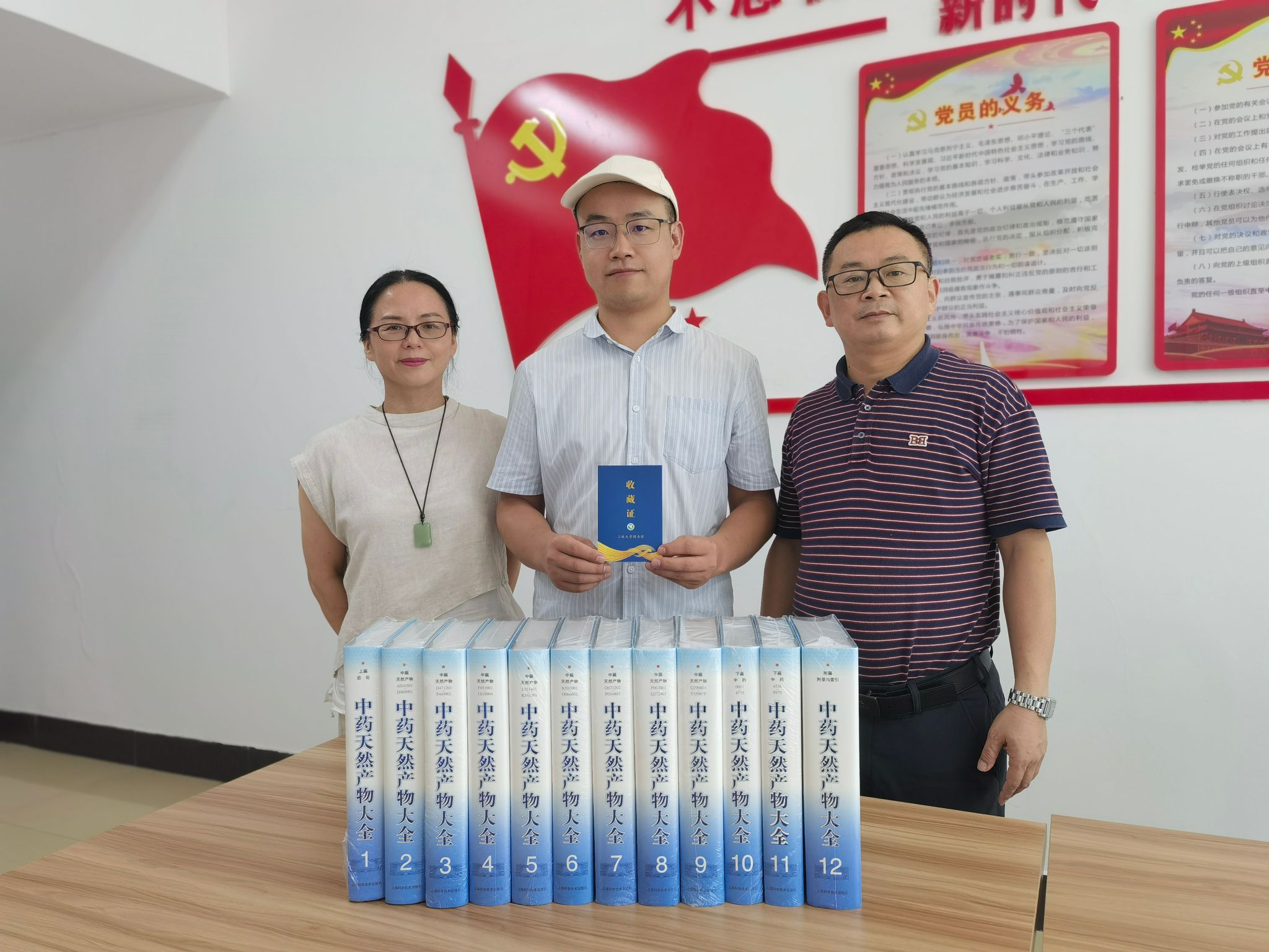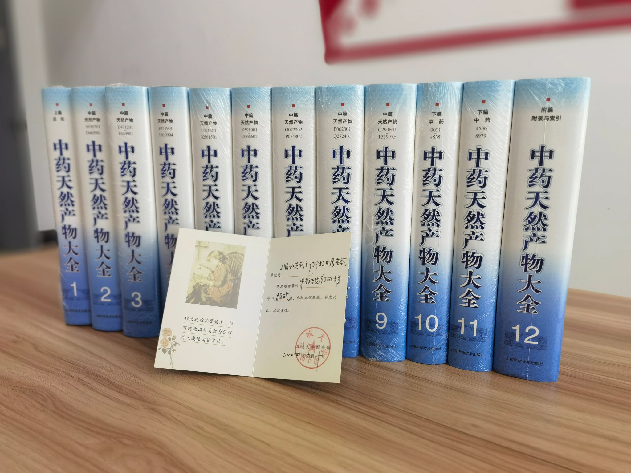 本网讯(通讯员 王军/文 望艳春/图) 近日,在我校生物与制药学院姚辉副教授的牵线搭桥下,图书馆收到了上海怡杰创新科技发展基金会捐赠的《中药天然产物大全》丛书。