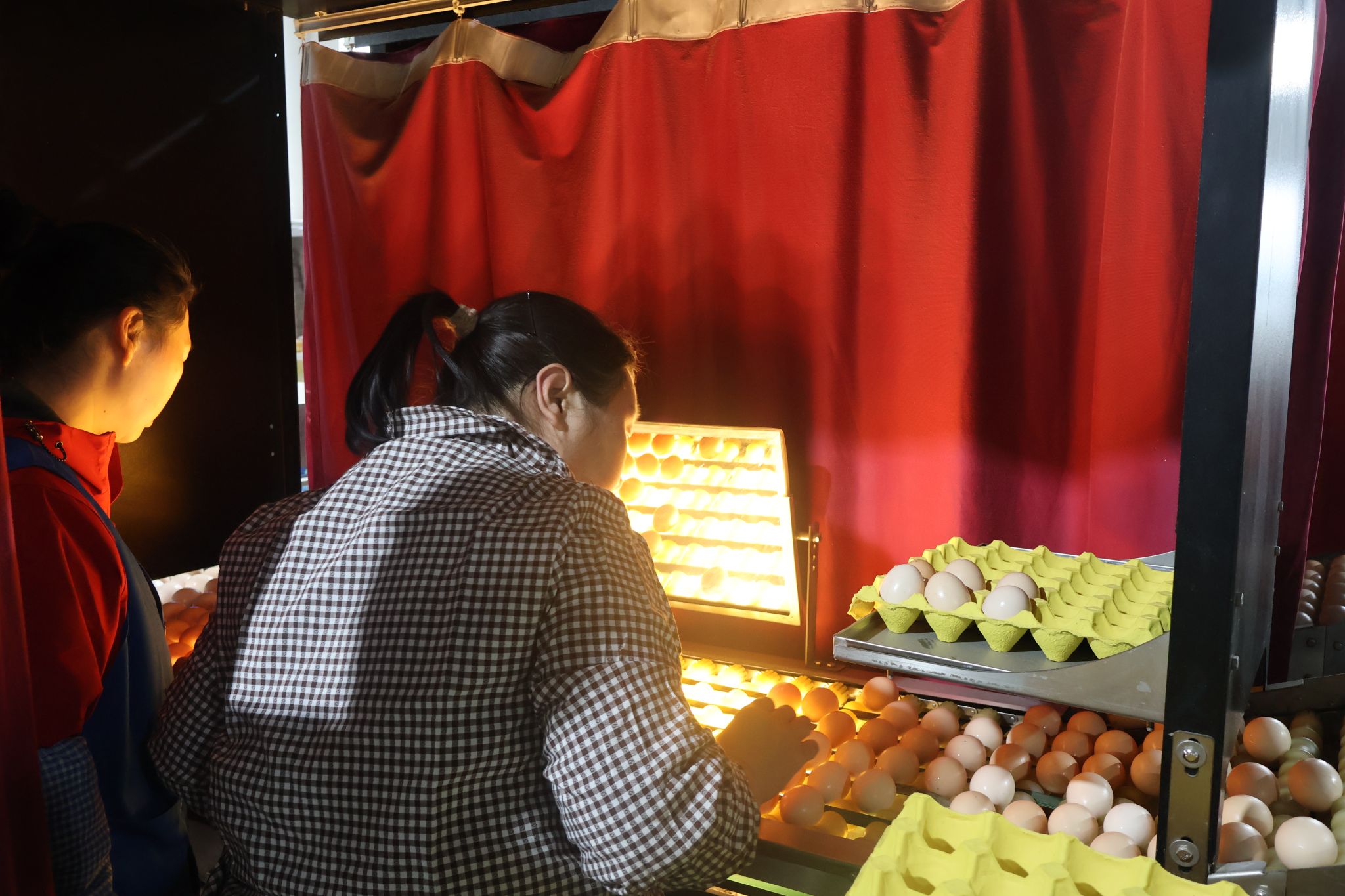 在调研中,团队深入众达公司禽蛋分拣生产线,了解到企业目前采用人工目视检查、光学检测的高标准质检流程。众达始终重视技术创新,近年来已考察多类检测设备,希望引入更高效、精准的方案,进一步提升品控水平。