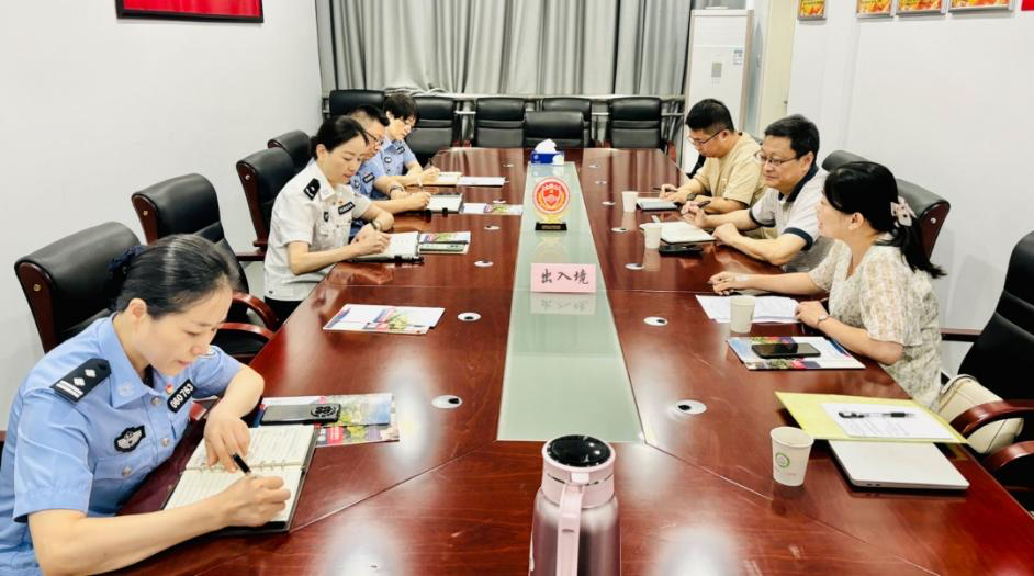 本网讯(通讯员 张艺飞) 为深入推进翻译实习实践基地建设,8月1日,外国语学院院长席敬、党委委员胡新颖、翻译队指导教师张艺飞走访宜昌市公安局出入境管理支队。宜昌市公安局出入境管理支队支队长李沪瑛,大队长付良山、钟蔚、李祖芬等热情接待了席敬一行。