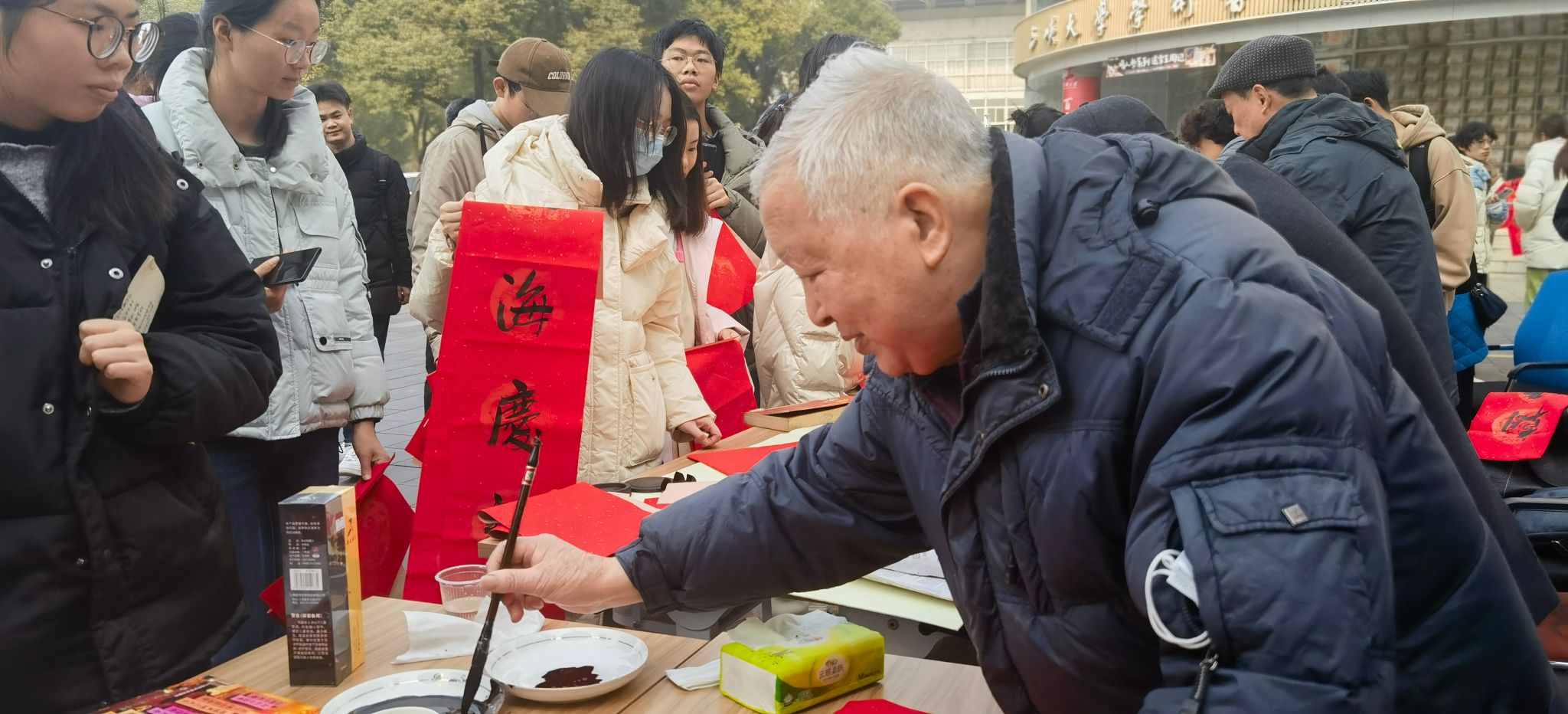 本网讯(通讯员 张群英/文 张聆铃/图/视频) 1月10日,为迎接新春到来,让“三大”师生沉浸式体验年俗年味儿,在浓浓的新年氛围中畅享“悦”读,图书馆开展了“传承文化送祝福,翰墨飘香迎新春”系列活动。