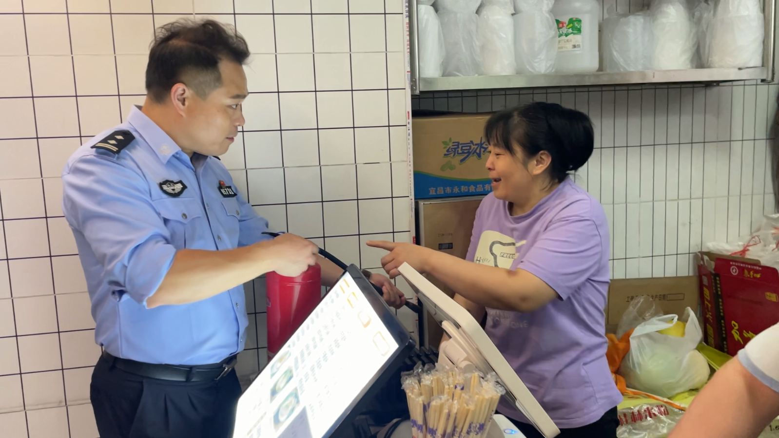 检查组一行先后对SOGO广场、凝聚新天地商业综合体及校园周边文印、餐饮等商业门店的消防器材、火灾报警设备、疏散通道、从业人员消防培训情况、从业资格、卫生环境等情况开展检查。检查人员要求商业综合体管理人员务必切实加强商铺日常安全管理,增强生产安全责任意识,强化自我排查力度,切实做到“有患必除”,确保生产安全稳定。