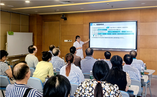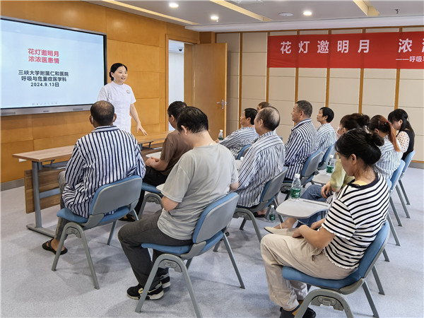 附属仁和医院呼吸与危重症医学科主治医师吴双讲解了慢阻肺相关知识及自我管理方法,护师周亚兰指导了大家吸入剂的使用方法。随后,患者学习了呼吸功能锻炼。