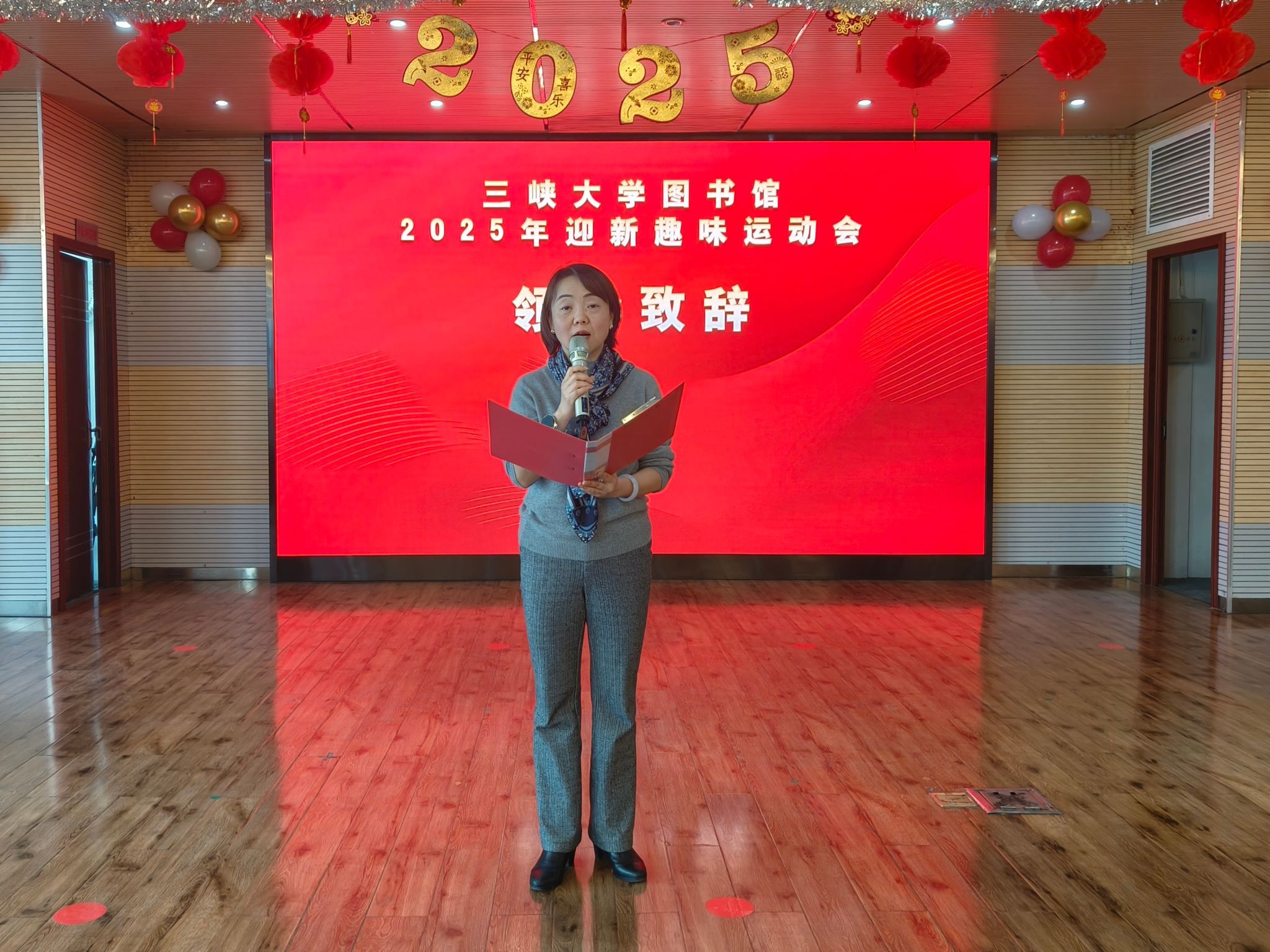 本网讯(通讯员 张艳丽/文 叶宏 张聆铃/图) 欢声笑语辞旧岁,喜气洋洋迎新年。1月10日下午,图书馆屈原报告厅张灯结彩,格外喜庆,节日氛围浓厚,隆重举行图书馆2025迎新趣味运动会。全馆职工共同庆祝新年的到来。活动由图书馆工会精心组织,设置了丰富多彩的比赛环节,为大家带来了一场充满活力与温情的迎新盛会。