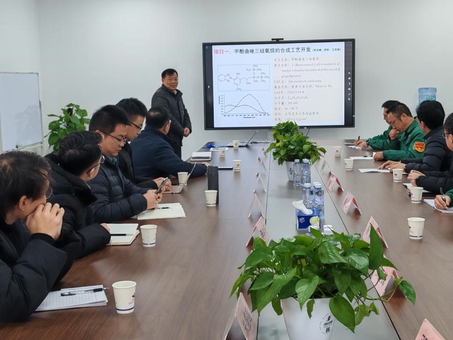会上,湖北省天然产物重点实验室主任、生物与制药学院制药工程学科主任黄年汇报了与华阳化工合作项目2024年度工作总结和2025年度工作计划。2024年研发中心进行了6个新产品的项目开发,6个项目的工艺优化等一系列的成果,完成了既定目标。华阳化工常务副总经理徐波充分肯定了研发中心在过去一年取得的成绩,双方团结协作,在紫外线吸收剂新产品技术创新与老产品技术升级研发工作中取得了一系列的成果。