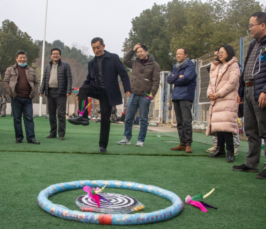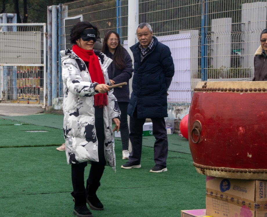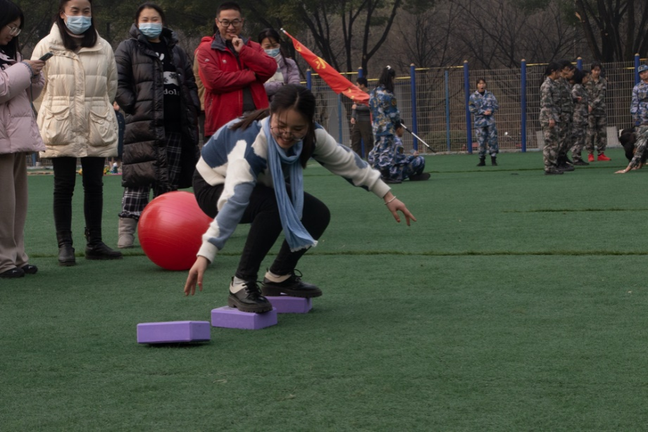活动共设夹球跑、袋鼠夹球跳、螃蟹跑、百发百中、蒙眼击鼓、摸石头过河等6个团体和个人项目。夹球跑比赛中老师们同心协力、协调配合,以昂扬的奋进姿态冲过终点线;袋鼠夹球跳和螃蟹跑考验着老师们的核心力量和协调能力,不论是以“向上、向前”的姿态,还是霸气地迈着“螃蟹步”,老师们都在热烈的加油声中奔向终点;百发百中是参与度最高的项目之一,几乎所有老师都尝试了用眼瞄准目标、用脚实现目标,并一次次完成自我突破;蒙眼击鼓项目是气氛最活跃、欢笑声最大的一个项目,不论是参赛选手还是一旁的观众,或许早已忘了这是一场运动会,深深沉浸在欢乐的氛围当中。