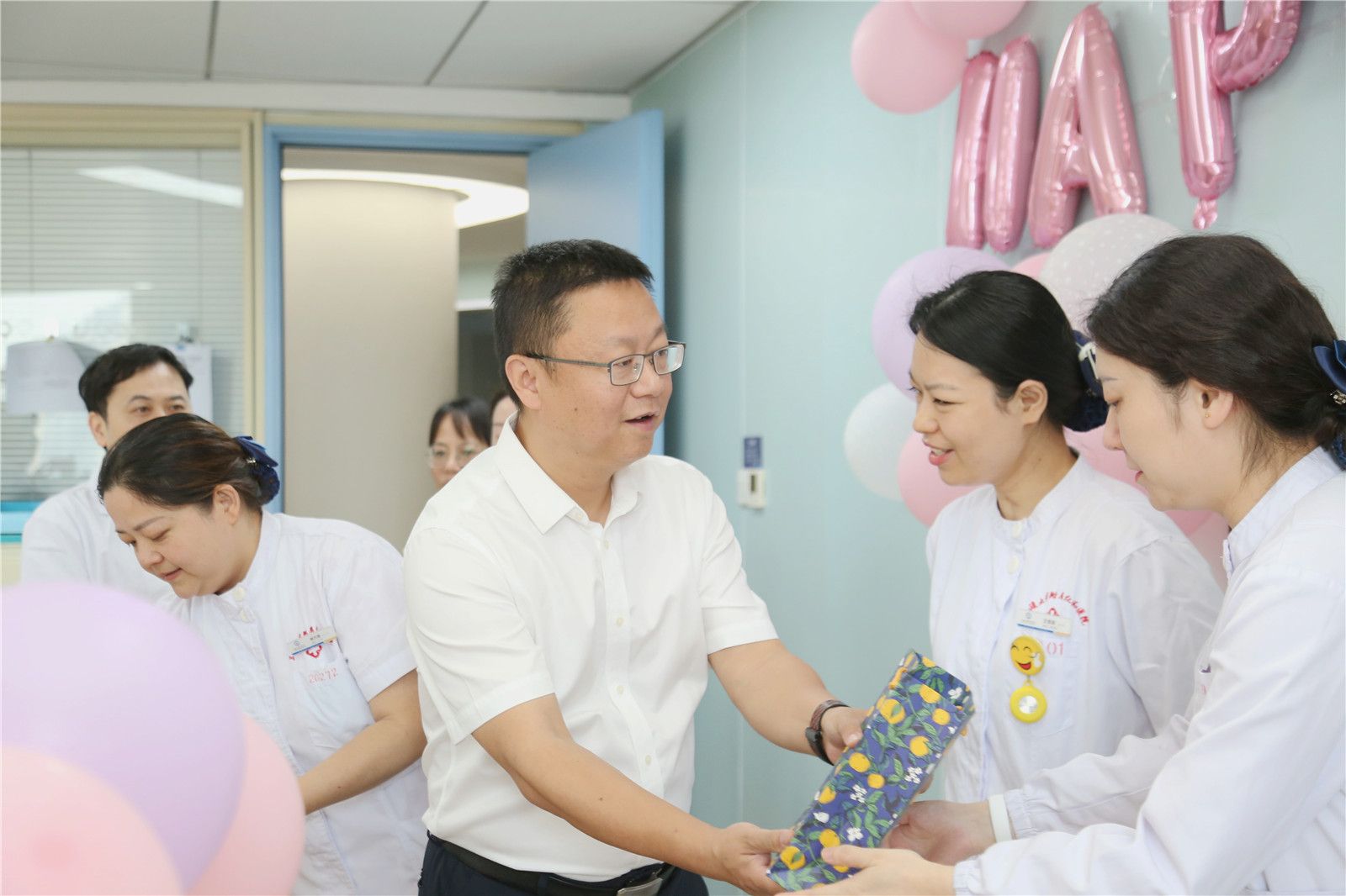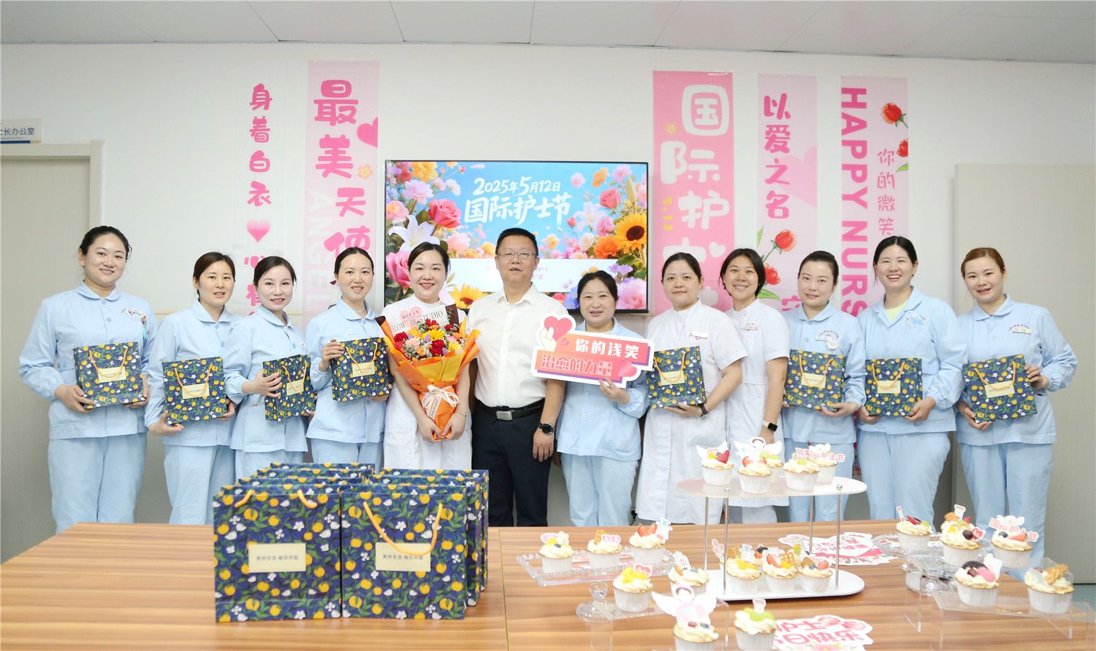 本网讯(通讯员 陈洁 李昕/文 张豪 李金琼/图) 近日,在第114个国际护士节到来之际,附属仁和医院党委书记董波、院长黄晓飞携护理部成员深入临床一线,为全院护理工作者送上节日祝福与定制礼盒。