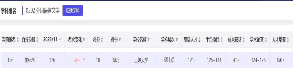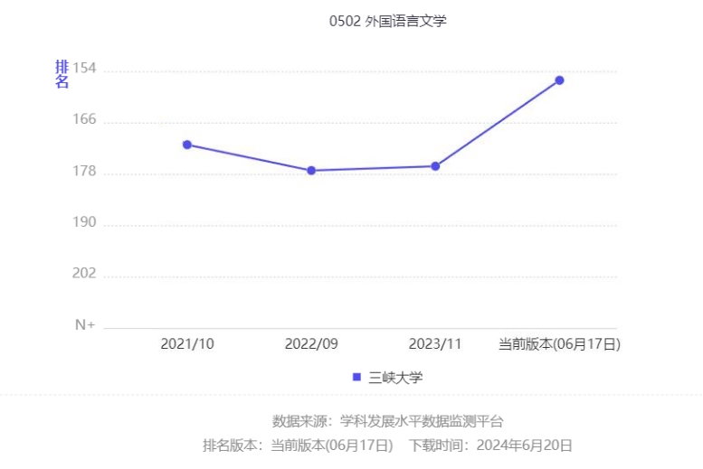 近年来,外国语学院在国内的学术影响力不断攀升,国内领先的高等教育数据服务机构高绩公司日前公布了最新国内高校各学科竞争力排名统计。外国语学院一级学科外国语言文学排名在最近半年内由第176位上升至第156位,上升了20位。在2024年软科的全国英语专业排名中,外国语学院英语专业升入专业层级B+阵列。