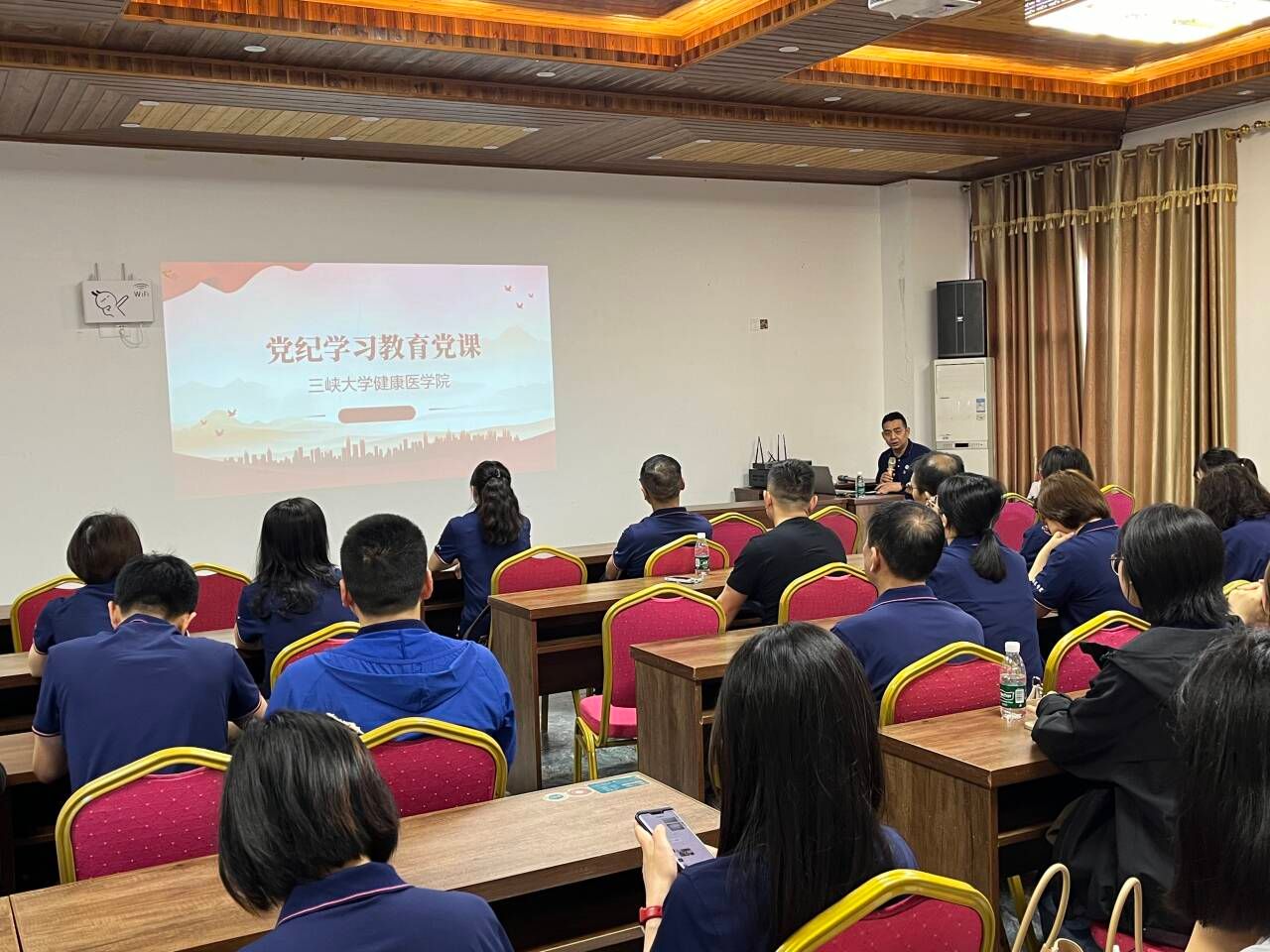 本网讯(通讯员 沈晶) 近日,健康医学院党委组织开展了“清风话廉”党建活动。健康医学院党委书记、院长李新志受邀到场指导并以“学条例 守党纪”为题讲授党课。健康医学院全体教职工参加活动。活动由健康医学院纪检委员宋斯琦主持。