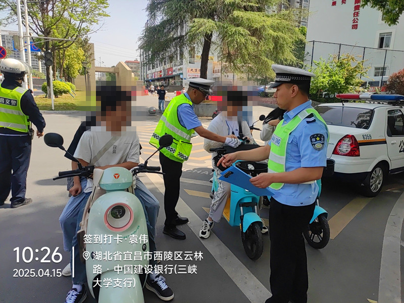 联合交警开展电动自行车专项整治。针对校园内电动自行车骑行不戴头盔、违规载人等安全隐患,保卫处联合西陵交警大队开展了专项治理活动。在校园主要路口设置检查点,对违规行为进行现场劝导和批评教育,有效提升了师生的安全骑行意识。