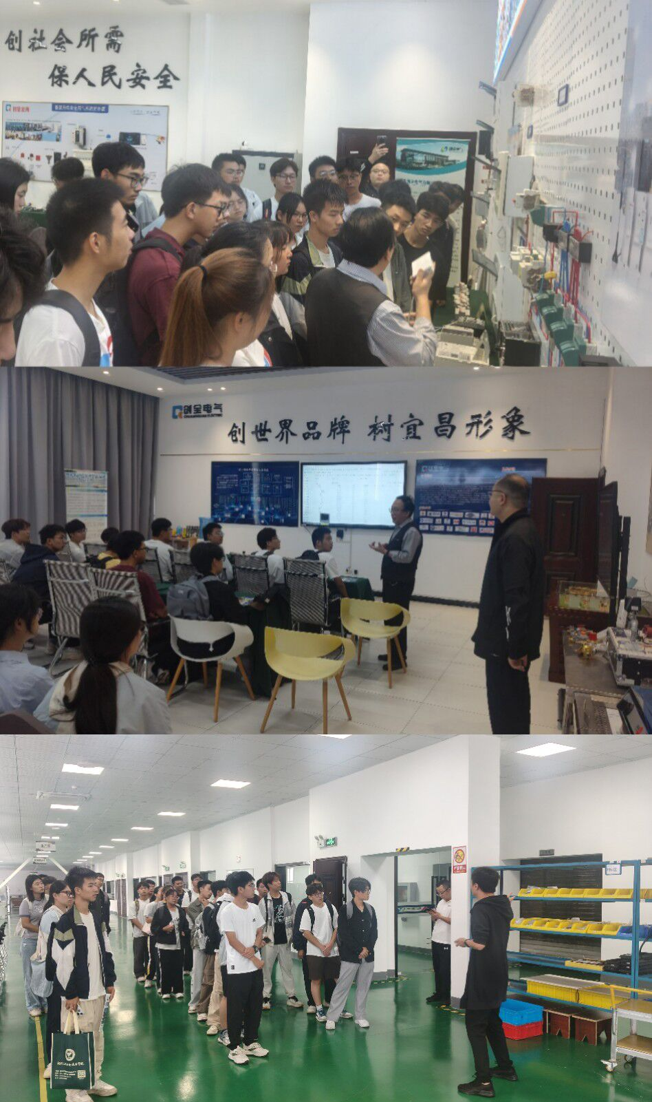现场,周顺新还邀请同学们参观了“智电安”产品展厅与智能化生产车间,分享了创业过程中应对挑战、把握机遇的决策经验与管理心得。