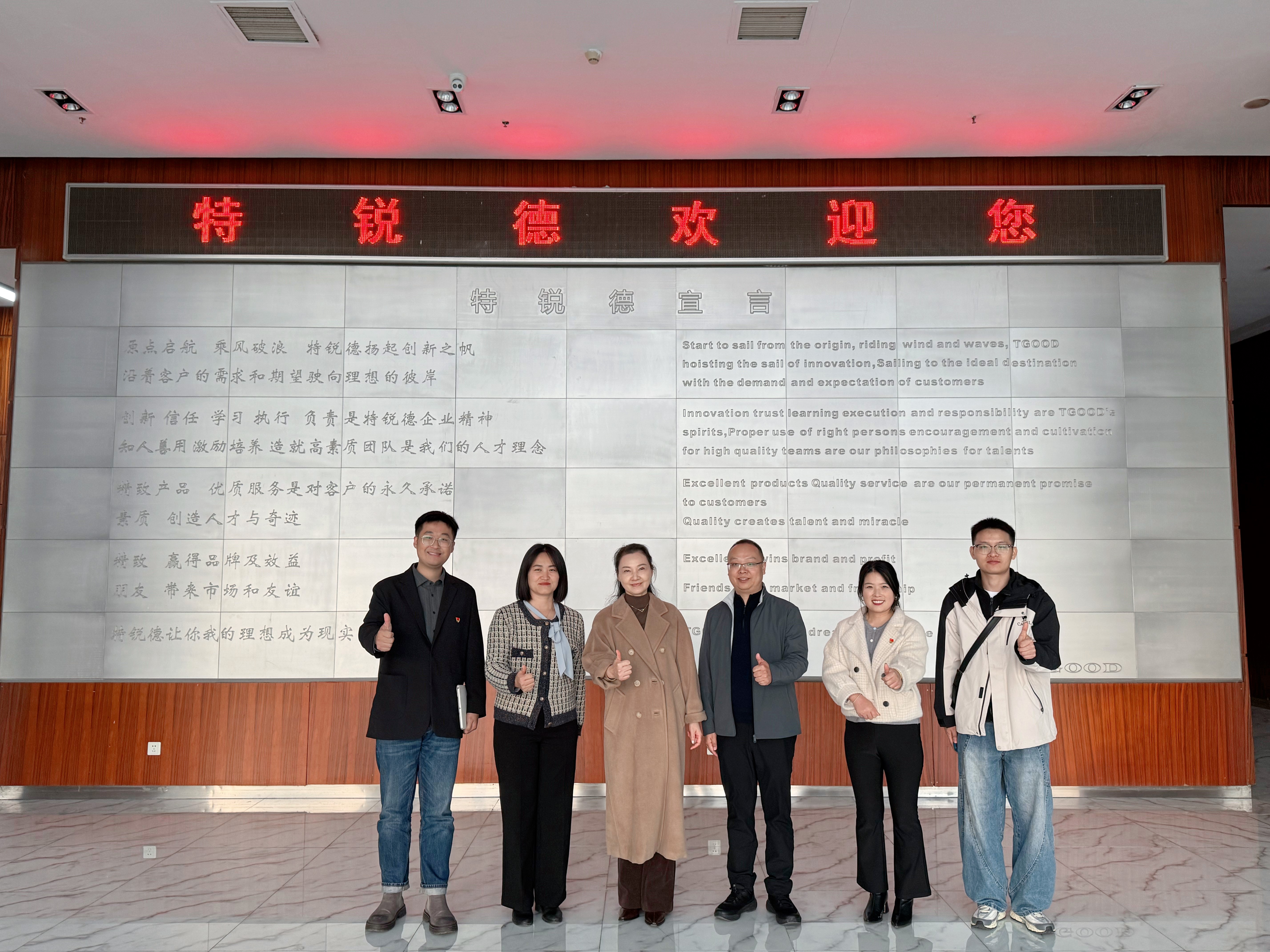 在青岛特锐德电气股份有限公司,外国语学院一行参观了企业新能源生态科技馆、超阶零碳建筑及生态党建展厅,并与公司人力资源团队座谈。李卫红指出,特锐德作为校友企业,在新能源领域成就突出,校企合作基础良好,未来可在毕业生招聘、产教融合等方面进一步拓展合作空间。青岛特锐德电气股份有限公司人力资源中心总经理韩增雪表示,企业国际业务发展迅速,对涉外专业人才需求迫切,与外国语学院人才培养方向高度契合,计划近期赴外国语学院开展专场招聘宣讲。