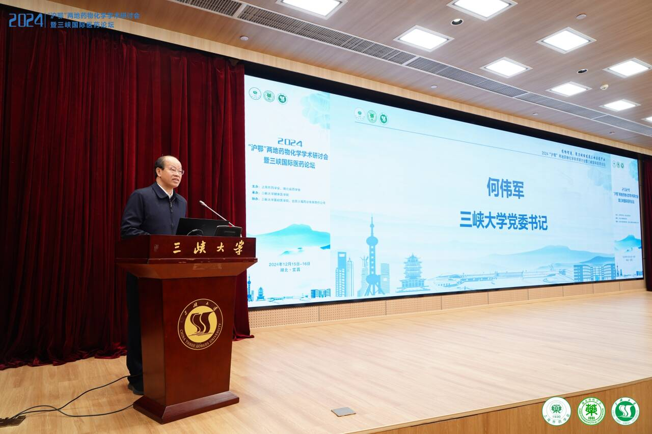 本网讯 12月15日-16日,2024“沪鄂”两地药物化学学术研讨会暨三峡国际医药论坛在我校隆重召开,学校党委书记何伟军出席会议并致开幕辞,中国科学院院士邓子新,上海市药学会理事长、上海中医药大学副校长陈红专教授,湖北省药学会副会长刘东教授分别致辞,党委常委、副校长李东升主持会议。