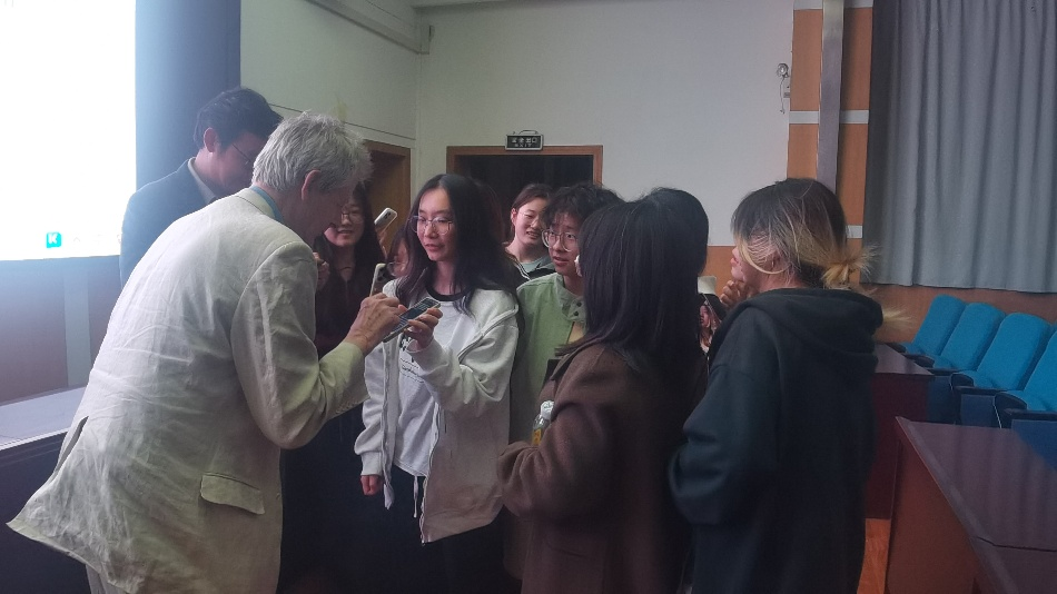 Hamnett教授的讲座内容分享结束后,学生纷纷积极提问。Hamnett教授围绕宜昌的城市发展、城市之间的竞争、如何提升城市国际吸引力等问题与师生展开了热烈探讨。