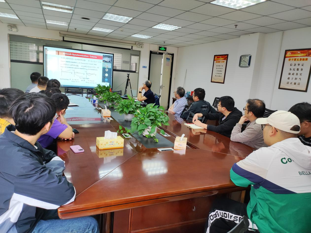 陈关荣教授以“复杂网络最优同步”为题,介绍了复杂网络的最优同步问题及最新研究进展。整场报告精彩翔实。报告结束后,参会师生纷纷抓住这一难得的机会,积极向陈关荣教授请教问题,现场氛围热烈。