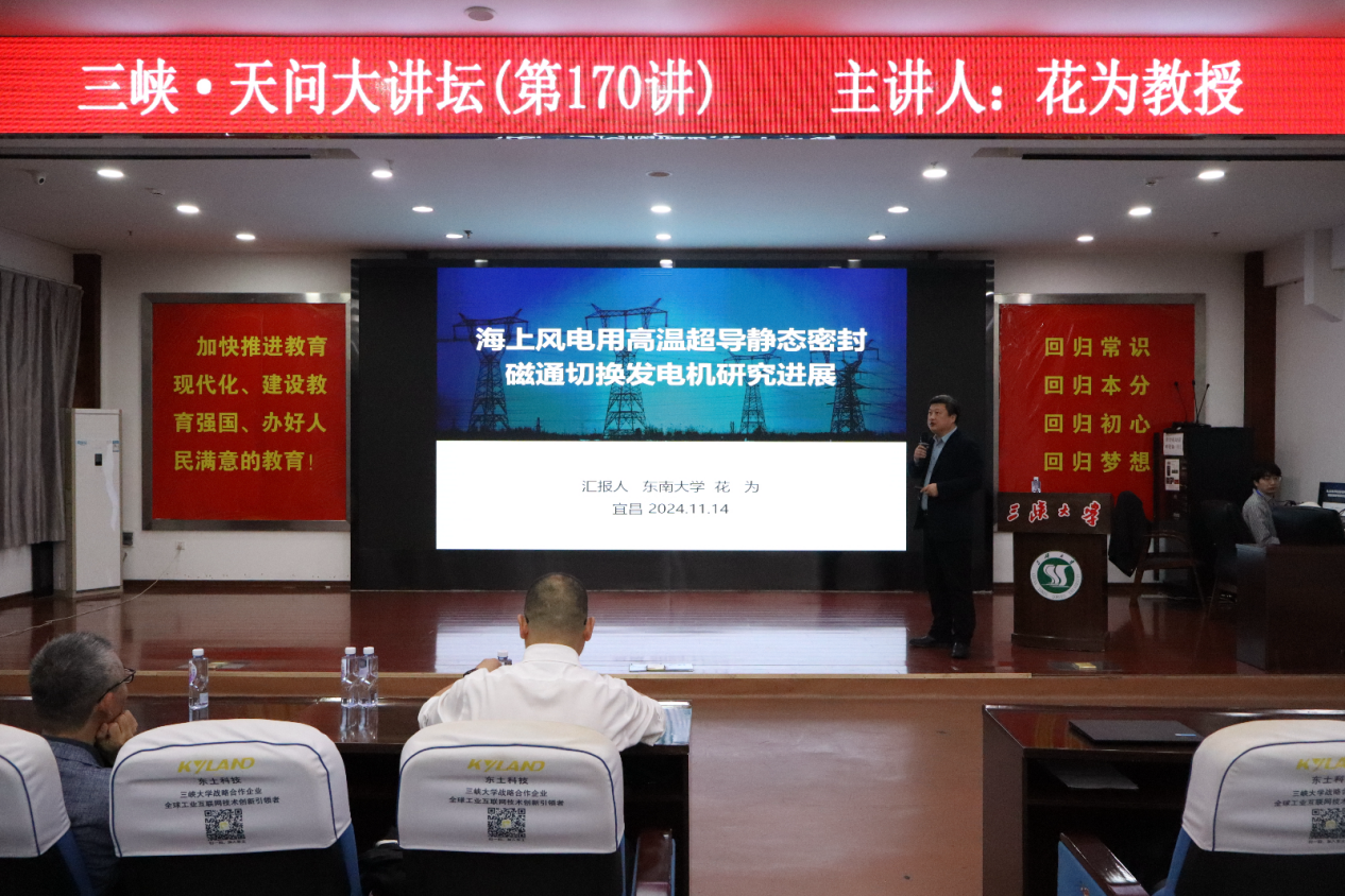 本网讯(通讯员 佘小莉) 11月14日上午,“三峡•天问大讲坛”第170讲在电气科学楼702报告厅举行。东南大学首席教授、国家级人才花为教授应邀作了学术报告。报告会由科技发展研究院主办、电气与新能源学院承办。来自电气与新能源学院的200余名师生聆听了报告会。