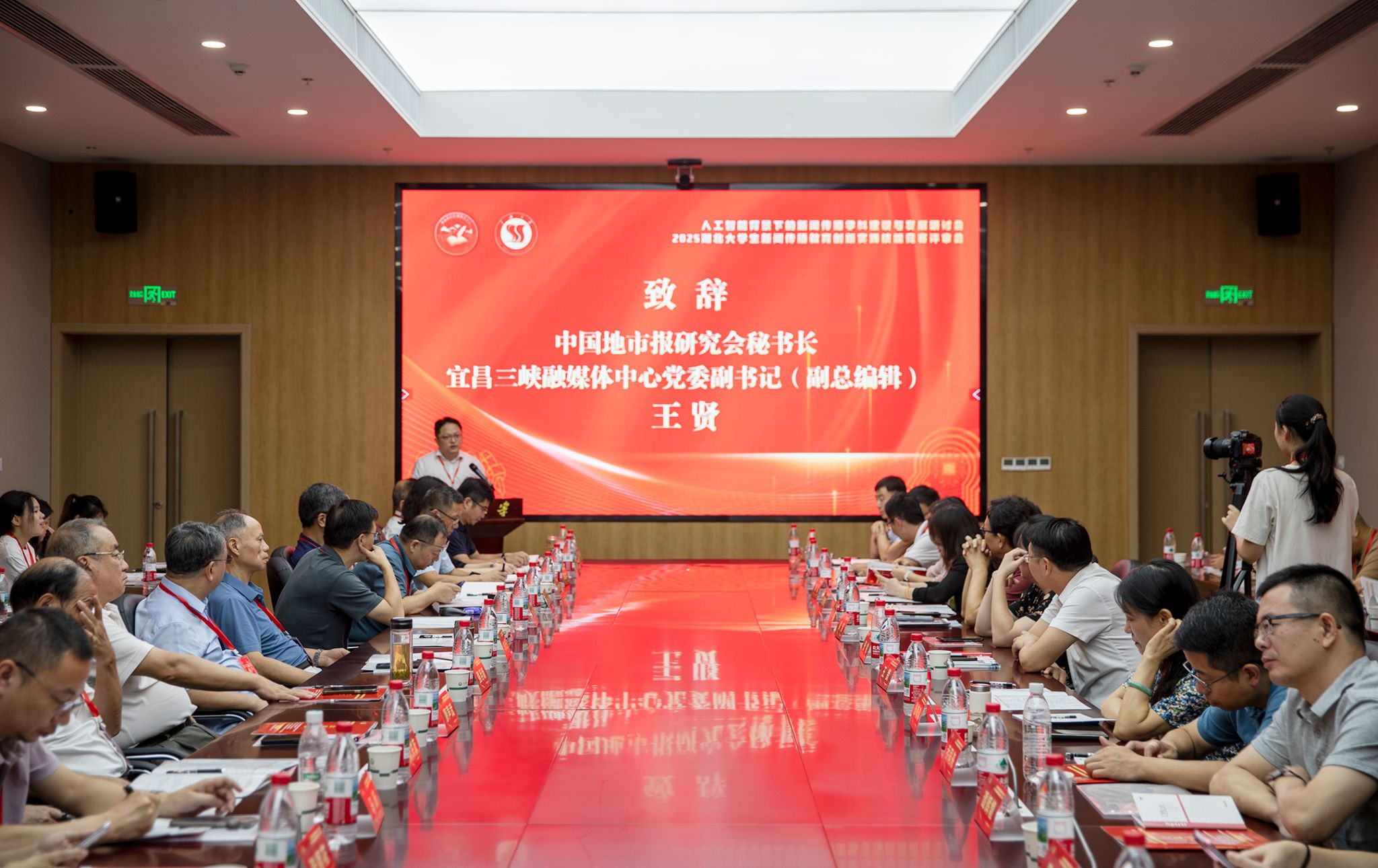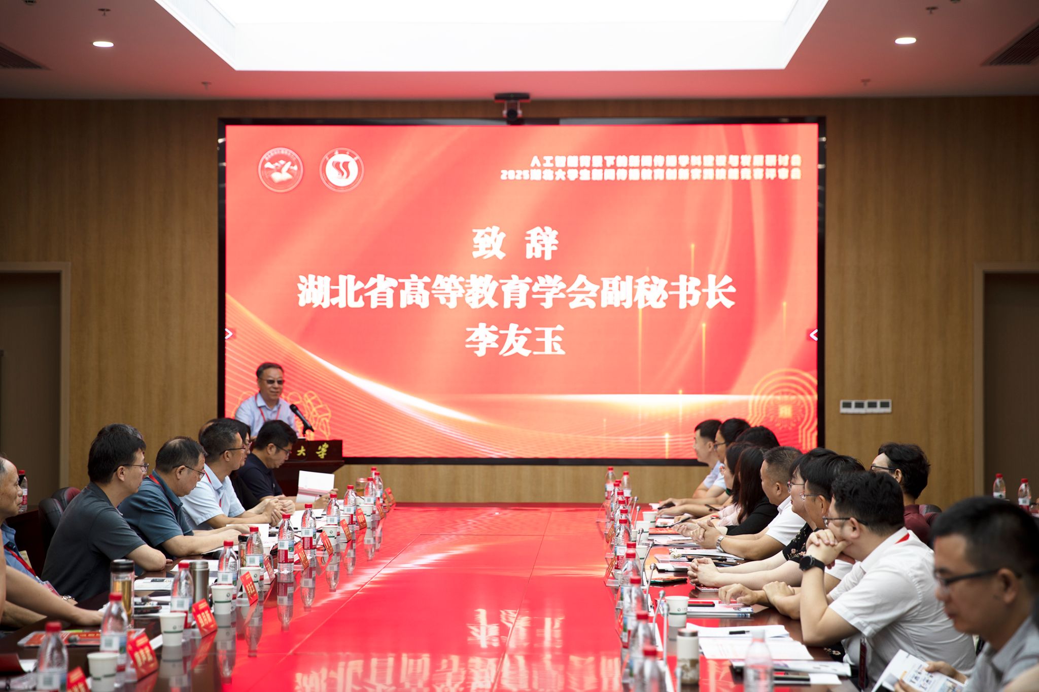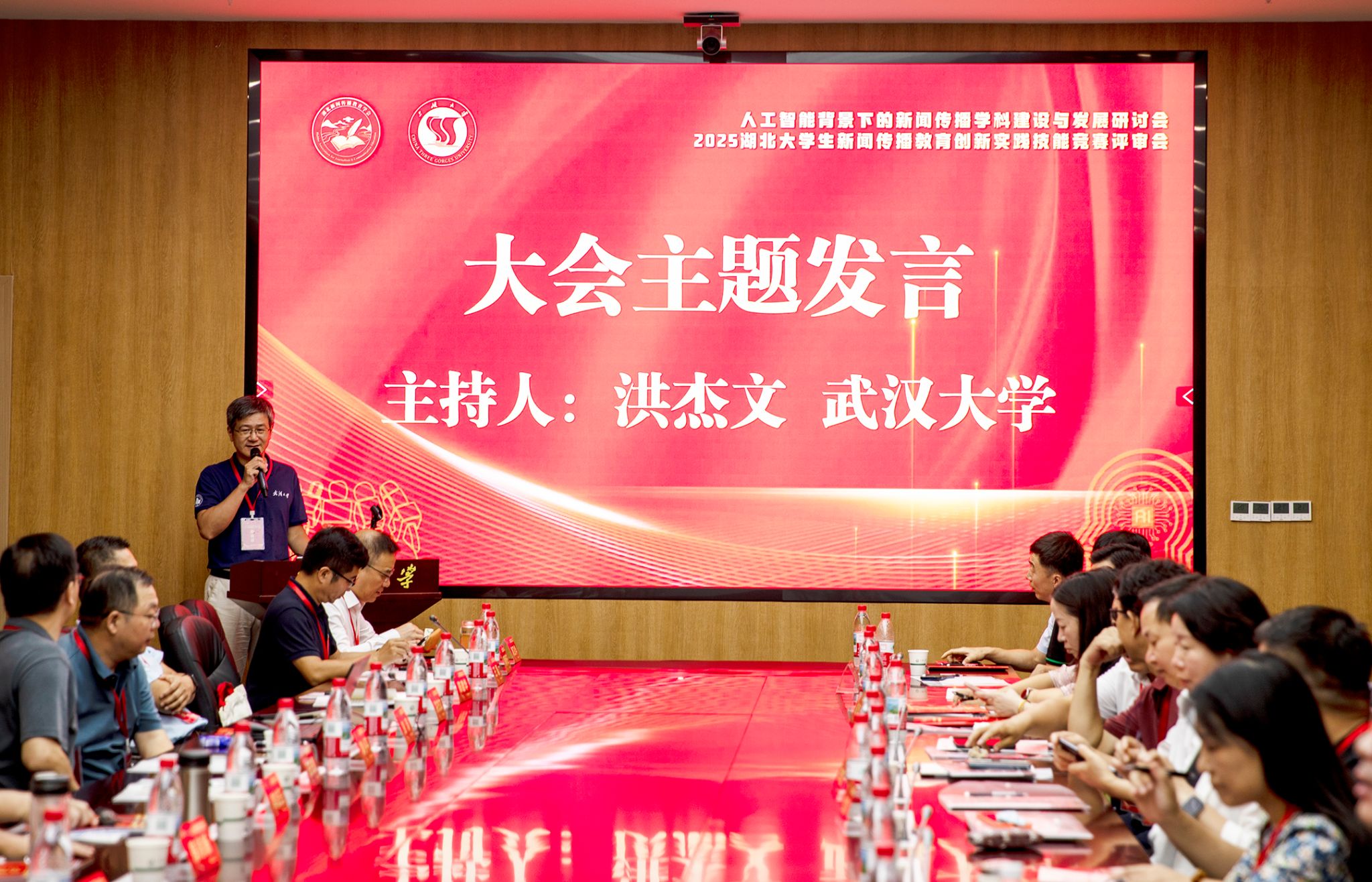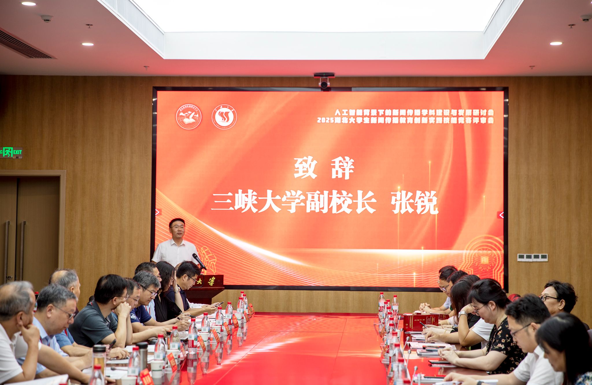 本网讯(通讯员 千雪、楚备、胡陈晓/文 吴志勇/图)7月21日至23日,由湖北省高等教育学会新闻与传播教育专业委员会主办、三峡大学文学与传媒学院承办的“人工智能背景下的新闻传播学科建设与发展研讨会暨2025湖北大学生新闻传播教育创新实践技能竞赛评审会”在三峡大学举行,来自武汉大学、华中科技大学等20多所院校的湖北省新闻与传播教育专业委员会常务理事,宜昌三峡融媒体中心、北京中广上洋科技股份有限公司等业界技术部门的专家参加会议。