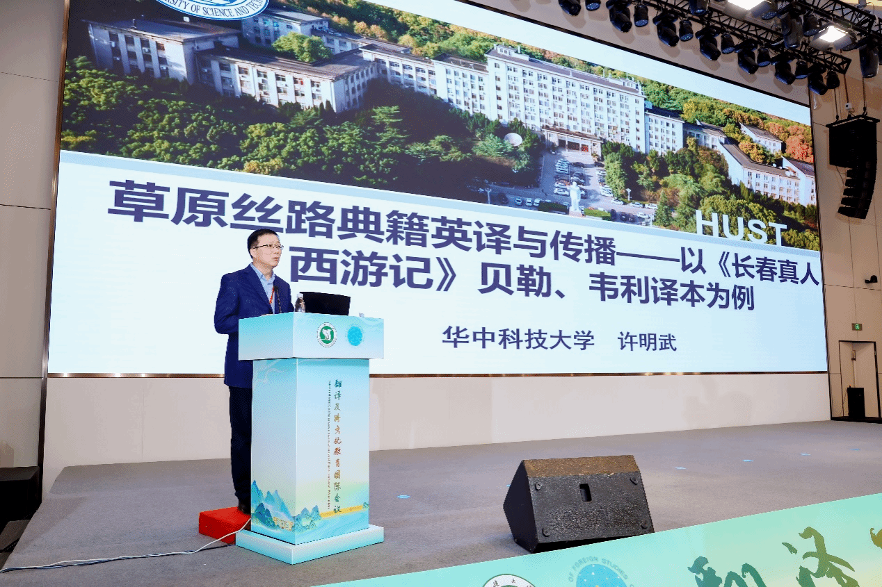 许明武教授的学术报告《草原丝路典籍英译与传播——以<长春真人西游记>贝勒、韦利译本为例》,以草原丝路典籍译介为切入点,探究论证翻译的本质是“转换(译文生产)”与“传播(译本传播)”两大环节构成的动态生成过程。许教授分别以草原丝路典籍《长春真人西游记》的俄国著名汉学家贝勒和英国汉学家韦利的英文译本为实例,重现了两种不同版本译本的动态生成过程。他强调,贝勒译本站在 “立足中国文献,融通中西多学科,站在中国观察世界”的角度,具有较高的学术价值,是向英语世界译介草原丝路文化的有益实践,对“草原丝绸之路”这一学术概念的提出具有启蒙作用,促进了丝路文化的域外传播与跨学科研究;韦利译本坚持服务读者、心系读者的译介思想,综合运用直译、音译和注释的翻译策略,有效推进了丝路文化的大众化传播。最后,他指出贝勒和韦利汉英译本共同推进了丝路文化在域外的顺利传播,他们的翻译实践再次证实了“社会文化语境”“译者行为”和“译本的传播与接受”三要素的互联互动组成了翻译的动态生成过程。