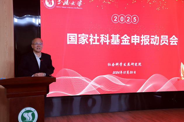 本网讯(通讯员 姑再努尔·卡德尔 陈可) 10月26日,由社会科学发展研究院主办的“2025年度国家社科基金申报动员会”在三峡智库报告厅举办。学校党委常委、副校长李东升出席动员会并讲话。