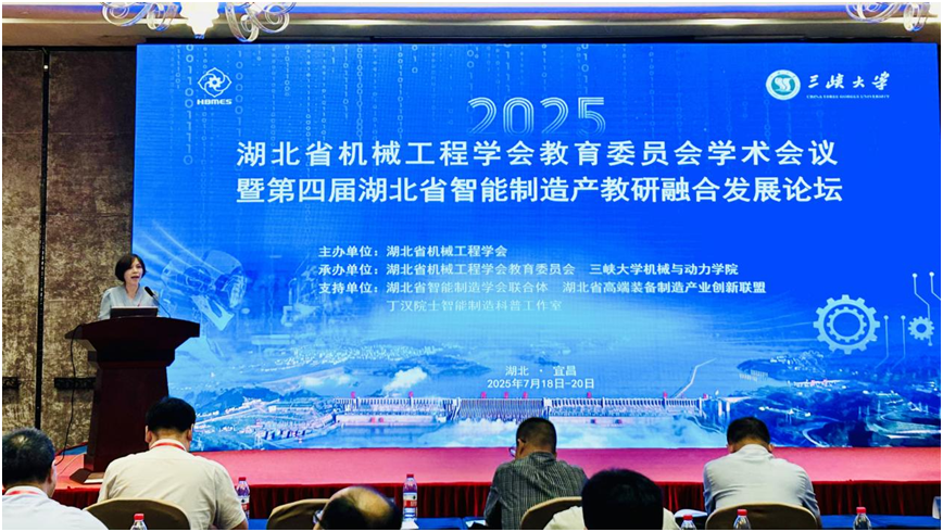 本网讯(通讯员 董元发 孟荣华) 7月19日下午,“2025年湖北省机械工程学会教育委员会学术会议暨第四届湖北省智能制造产教研融合发展论坛”在宜昌召开。湖北省机械工程学会副理事长兼秘书长朱永平、三峡大学机械与动力学院党委书记时胜利等嘉宾出席。三峡大学机械与动力学院董元发教授主持论坛开幕式,武汉大学机器人学院执行院长肖晓晖教授主持学术报告。来自中国机械工程学会、湖北省机械工程学会及其教育委员会、中国机械工程杂志社的80余位专家教授及高校师生参会。