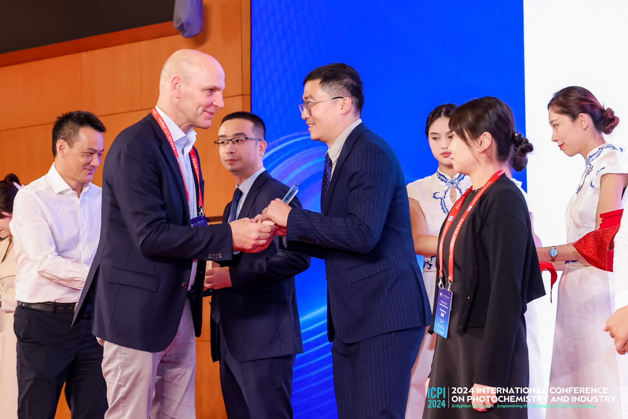 本网讯(通讯员 吕元飞) 10月11日至14日,2024国际光化学技术与产业大会在武汉召开。会议期间举办了“武创源”国际光化学及绿色制造技术创新大赛决赛,我校材料与化工学院青年教师黄笛副教授作为项目选手现场进行答辩,以总分排名第二的成绩荣获“创新突破奖”。诺贝尔化学奖获得者Benjamin List教授和武汉市科技创新局、青山区人民政府负责人为其颁奖。