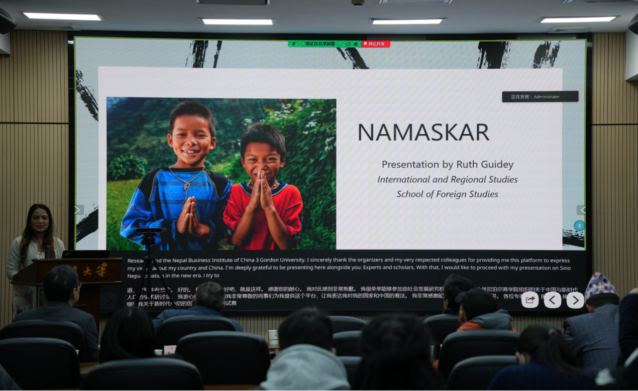 来自外国语学院国别与区域研究专业的两名研究生萨姆拉特·什雷斯塔(Samrat Shretha)与鲁斯·吉迪(Ruth Guidey)分别就中尼关系的历史、现状与未来发表专题发言,展现了年轻一代学者对两国关系的深入观察,代表了中尼友好研究中的新一代力量。