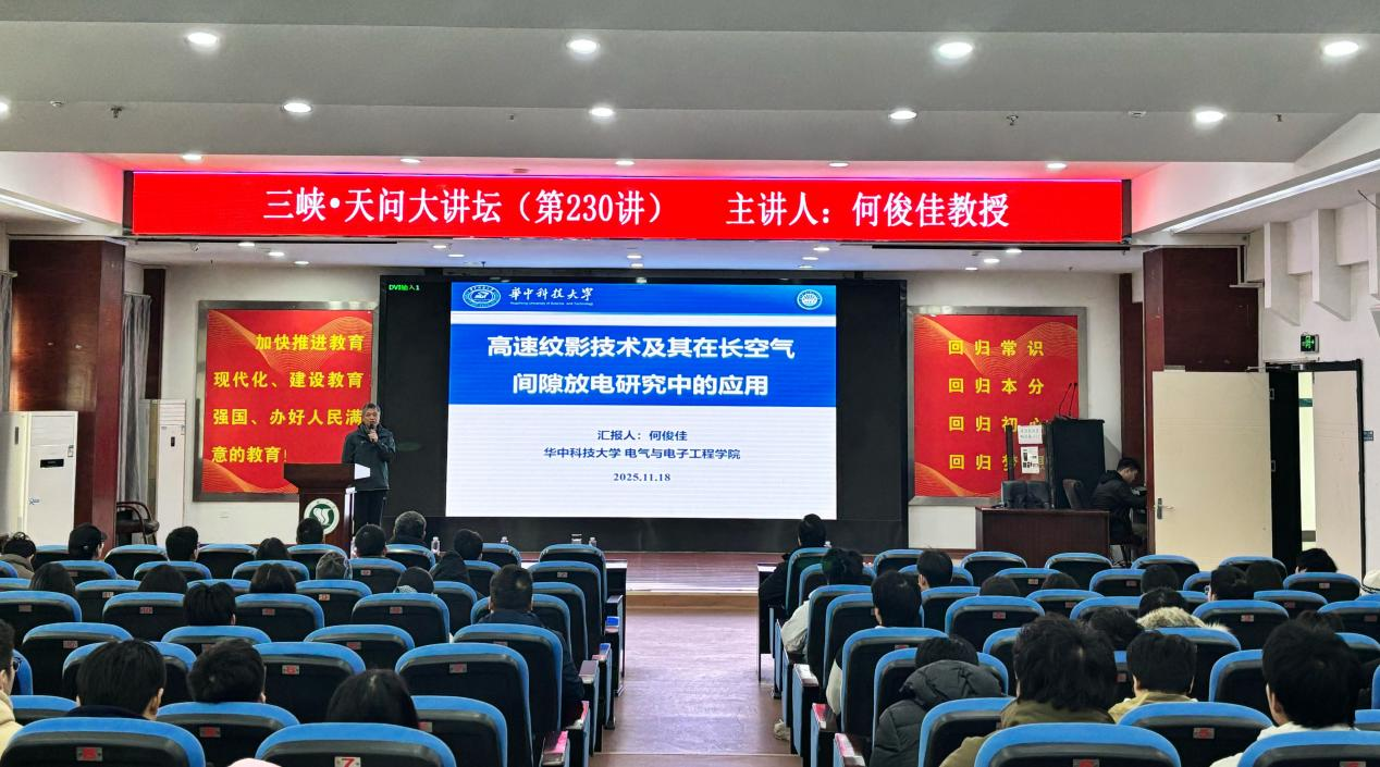本网讯(通讯员 佘小莉)11月18日上午,由科技发展研究院主办、电气与新能源学院承办的“三峡·天问大讲坛”第230讲在电气科学楼702报告厅举行。华中科技大学电气与电子工程学院何俊佳教授应邀作题为《高速纹影技术及其在长空气间隙放电研究中的应用》的学术讲座。电气与新能源学院200余名师生到场聆听。