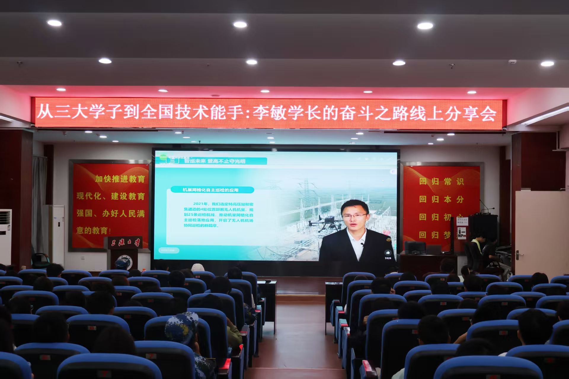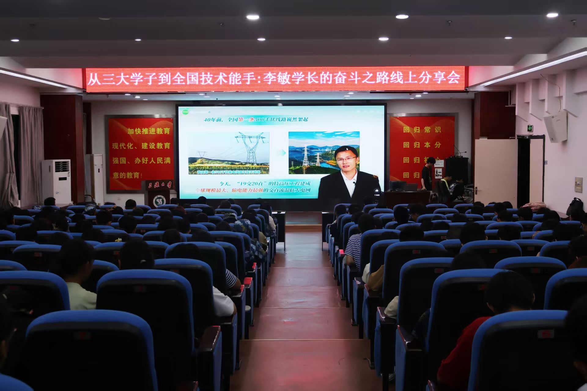 报告厅内,师生齐聚一堂,全程认真观看、仔细聆听。李敏以《登专业高峰,创无限可能》为题,结合自己扎根生产一线十余年的成长经历,用朴实生动的语言,分享了从一名普通技术工人逐步成长为行业技术能手的奋斗历程。