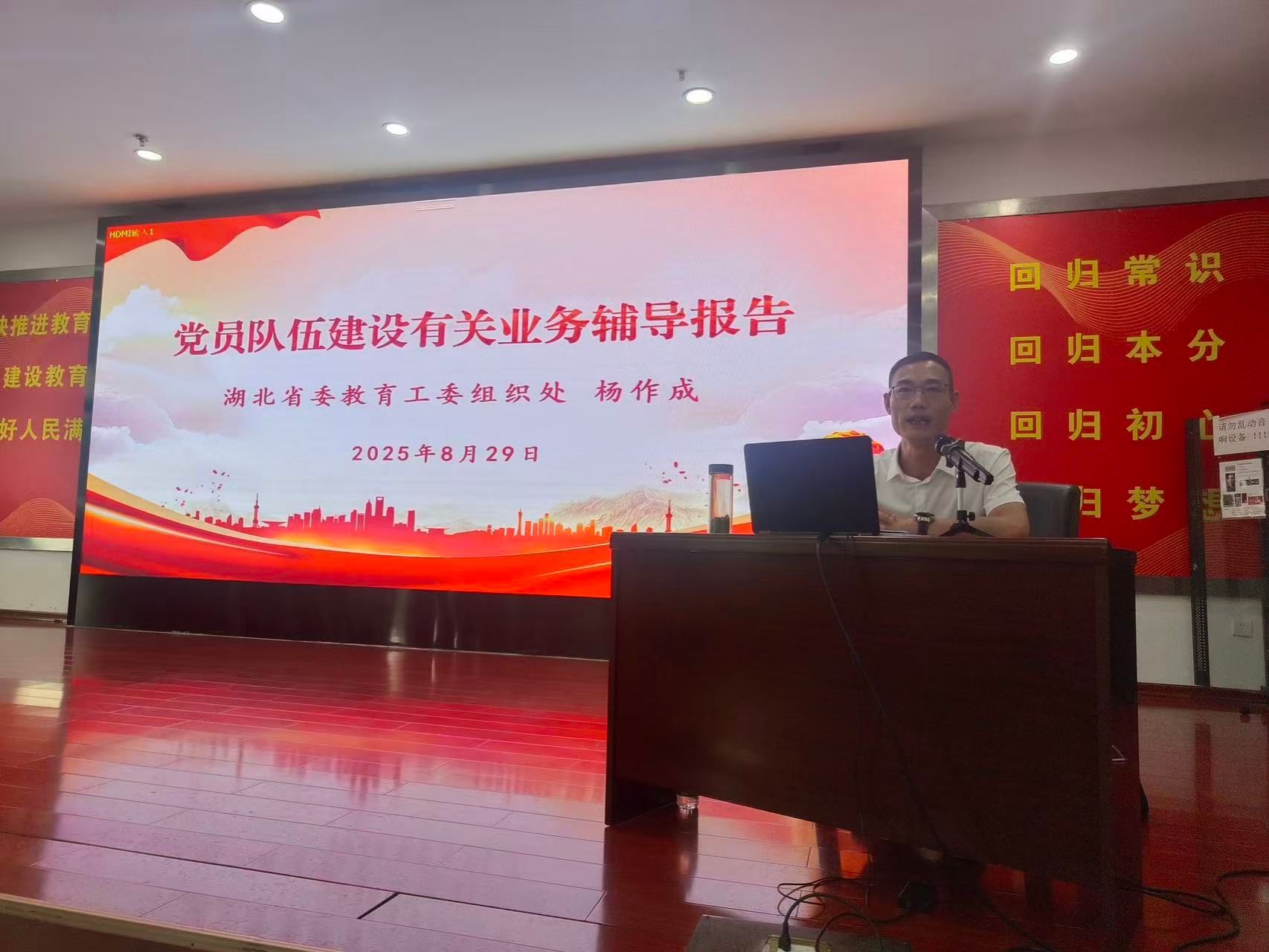 ·省委教育工委组织处四级调研员杨作成以《学习近期中央文件精神,加强高校党员队伍建设和党员教育管理》为题,解读了最新政策要求和工作部署。
