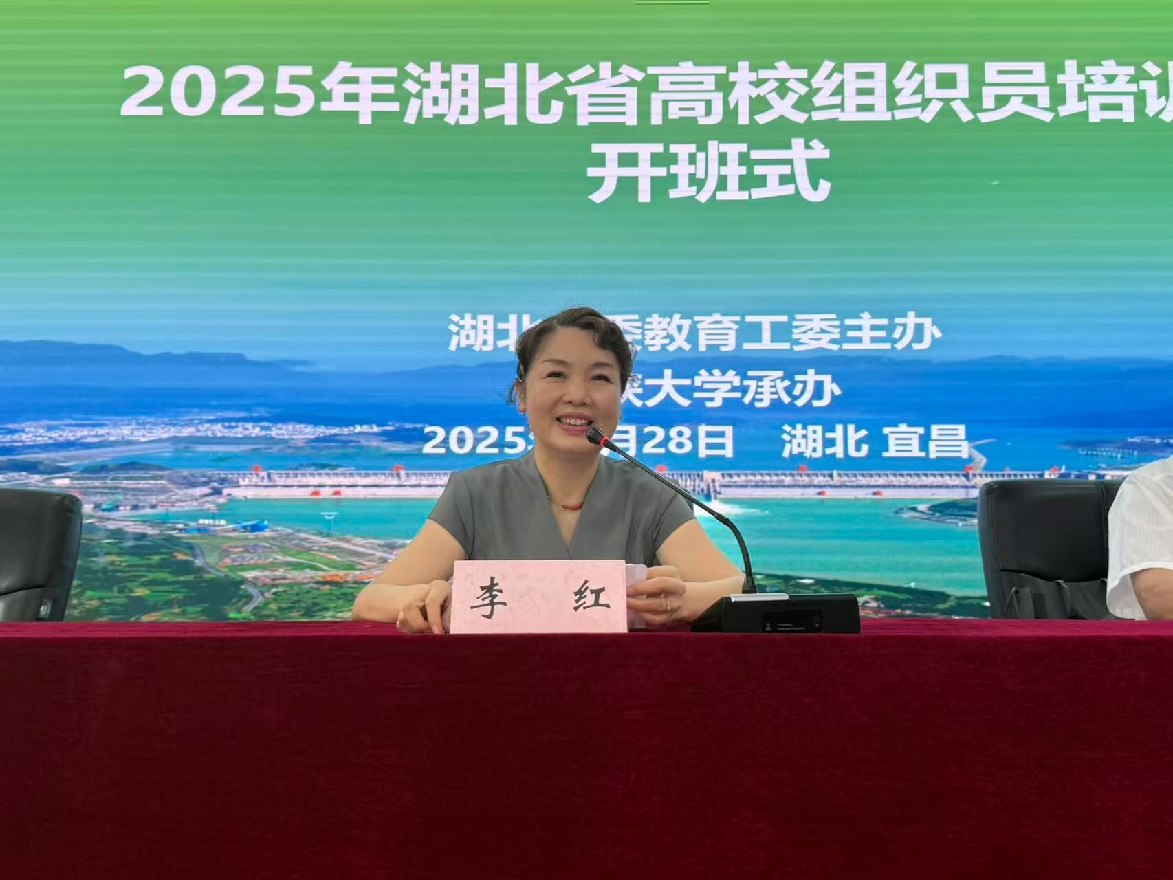 李红在致辞中代表三峡大学对各位学员的到来表示热烈欢迎,并对学校基层党建工作基本情况进行了介绍。她表示,组织员是基层党建最有力的抓手,省委教育工委组织开展此次培训,充分彰显了对高校组织员队伍建设的高度重视和对这支队伍的关心关爱。同时,也希望参训的学员们“带着使命学、带着目标学、带着责任学”,努力成为“政治坚定、业务精湛、视野开阔、工作得法”的高校优秀组织员和党建业务的“行家里手”,不辜负组织的重托。